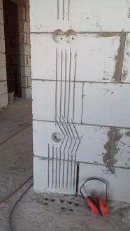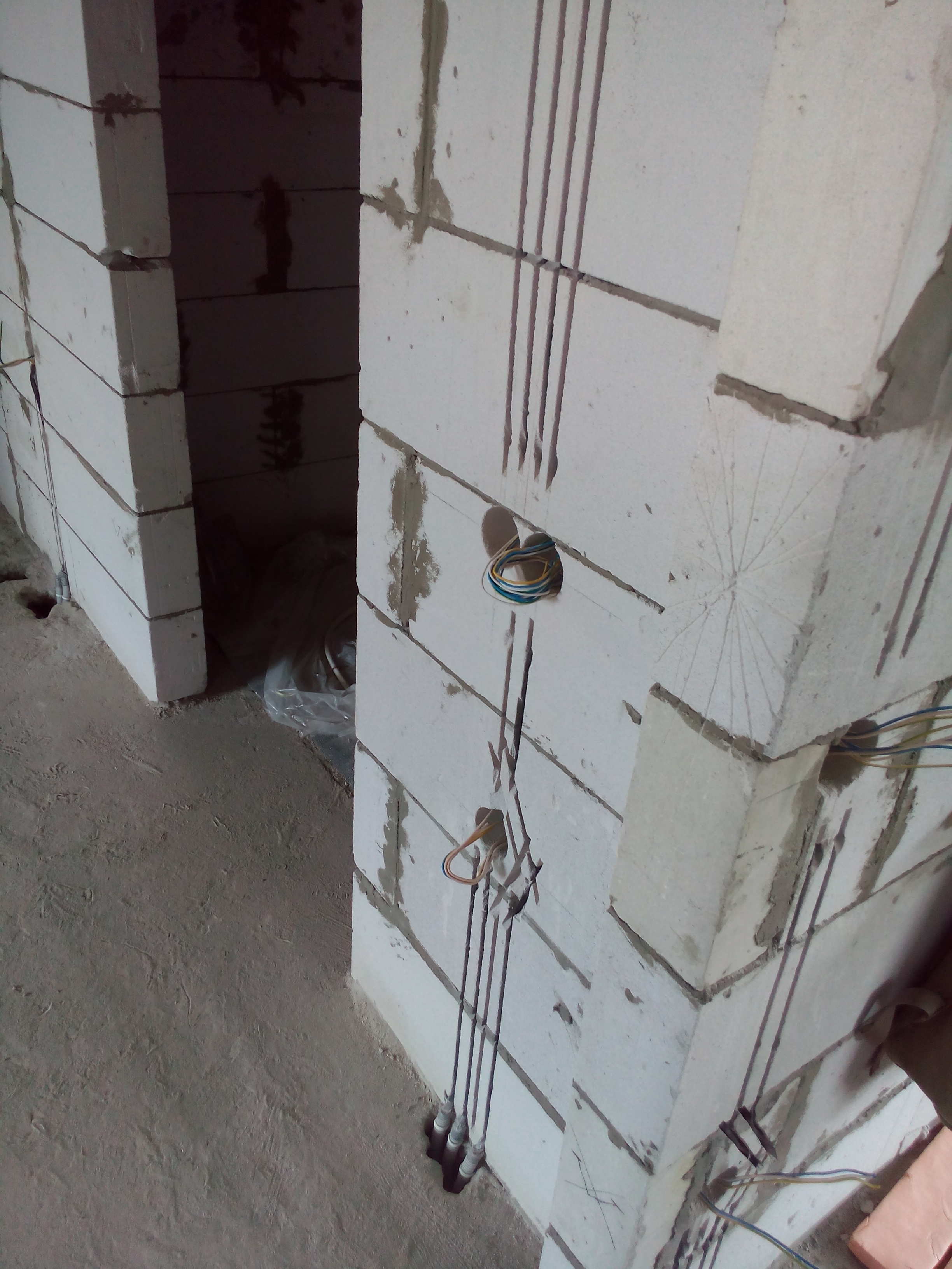 Речь шла о дизайнерской электропроводке, пришлось всё заштробить в пеноблок