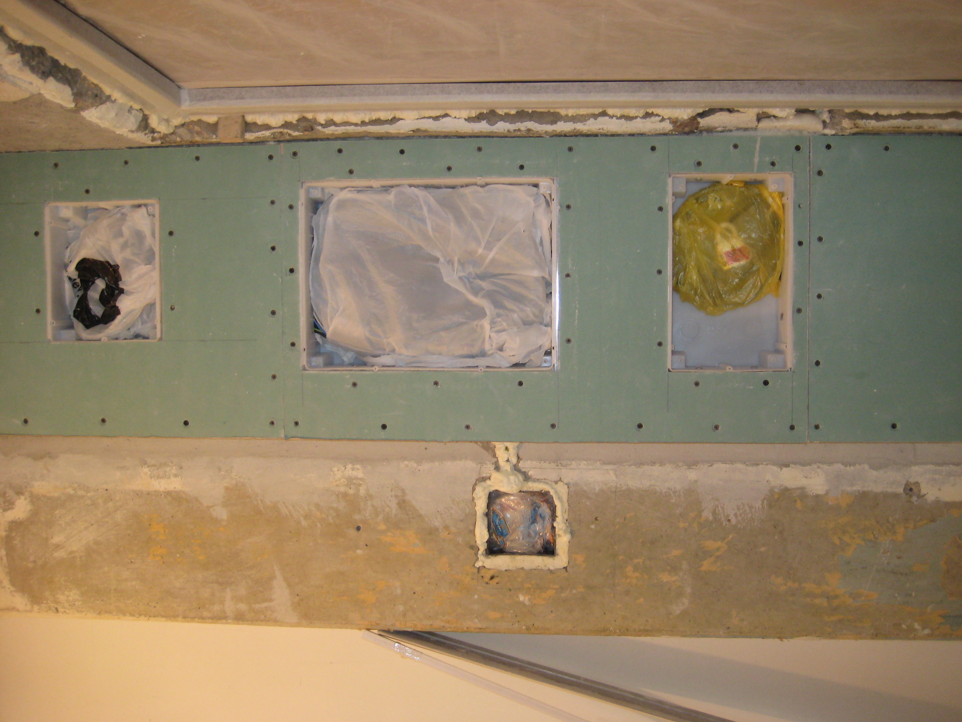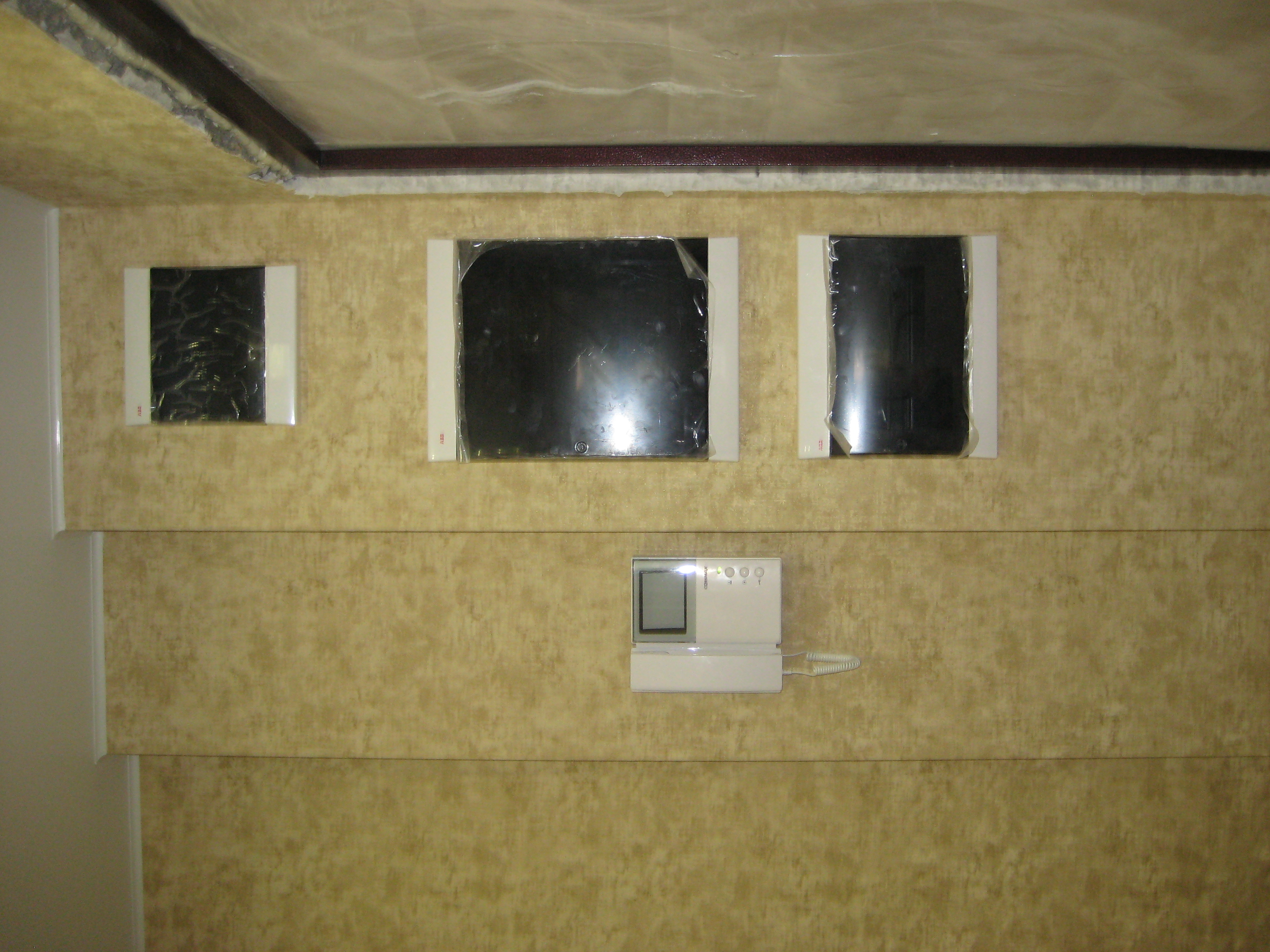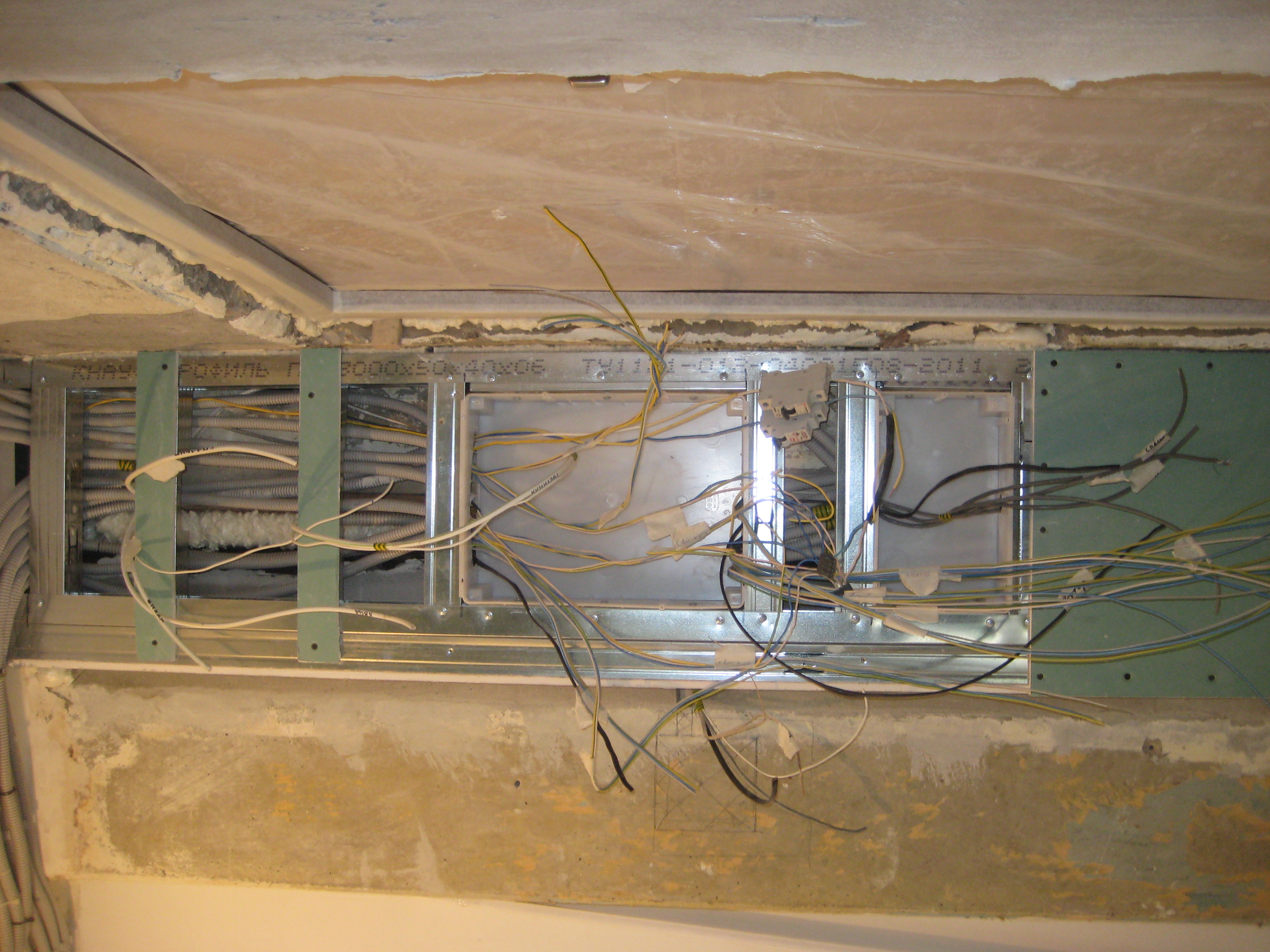 В коридоре смонтирован шкаф из профилей и ГКЛ для щитов различного назначения.