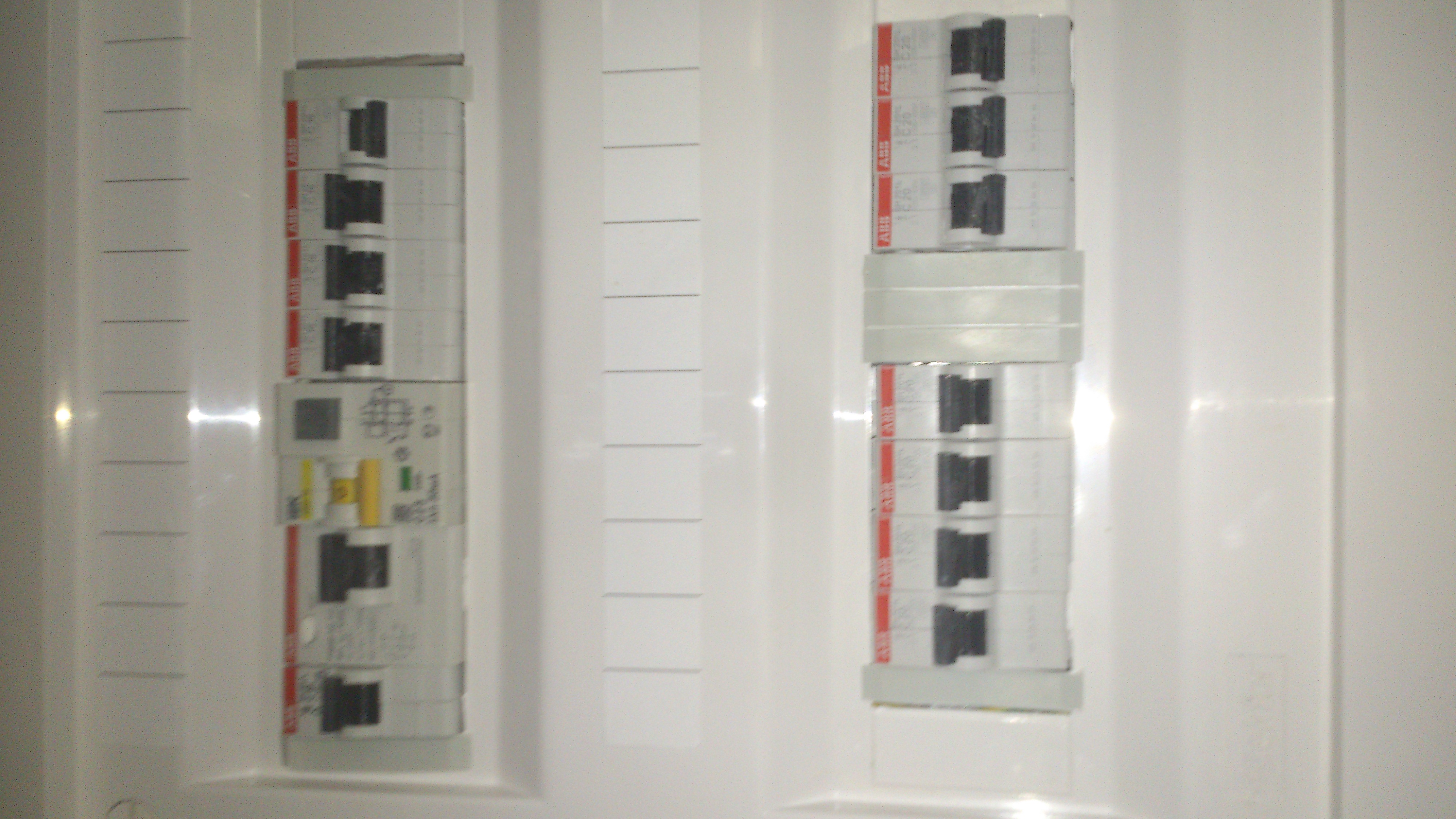Вводной диф.автомат трогать мы не стали,как и счетчик. Ввод в квартиру был выполнен кабелем 3 на 6 кв.мм (система TN-C-S в доме) . В щите мы установили, автомат на 40А(селективность+защита от перегрузки вводного кабеля) . Далее было установлено УЗО на группы розеток,исходя из материальных пожеланий заказчика 1 УЗО установили на группы розеток и теплый пол. Далее диф.автомат на эл.плиту номиналом 25А и 30мА. Было решено сделать 3 группы освещения,а именно 1) Кухня+коридор;2) зал 3) спальня+ванна+туалет. Все розеточные группы полностью(до распаячной коробки и до самих розеток) выполнены кабелем 3 на 2,5 кв.мм . На теплые полы,а они в 4-х местах в квартире отдельные линии, также кабелем 3 на 2,5 кв.мм с запасом,т.к. заказчик не знал на тот момент какие будут теплые полы. освещение все выполнено кабелем 3 на 1,5 кв.мм и ограничено номиналом автоматов 16А. Кстати теплые полы и розетки ограничены автоматов на 20А. Электропроводка выполнена в гофротрубе по потолкам с креплением на дюбель хомуты.