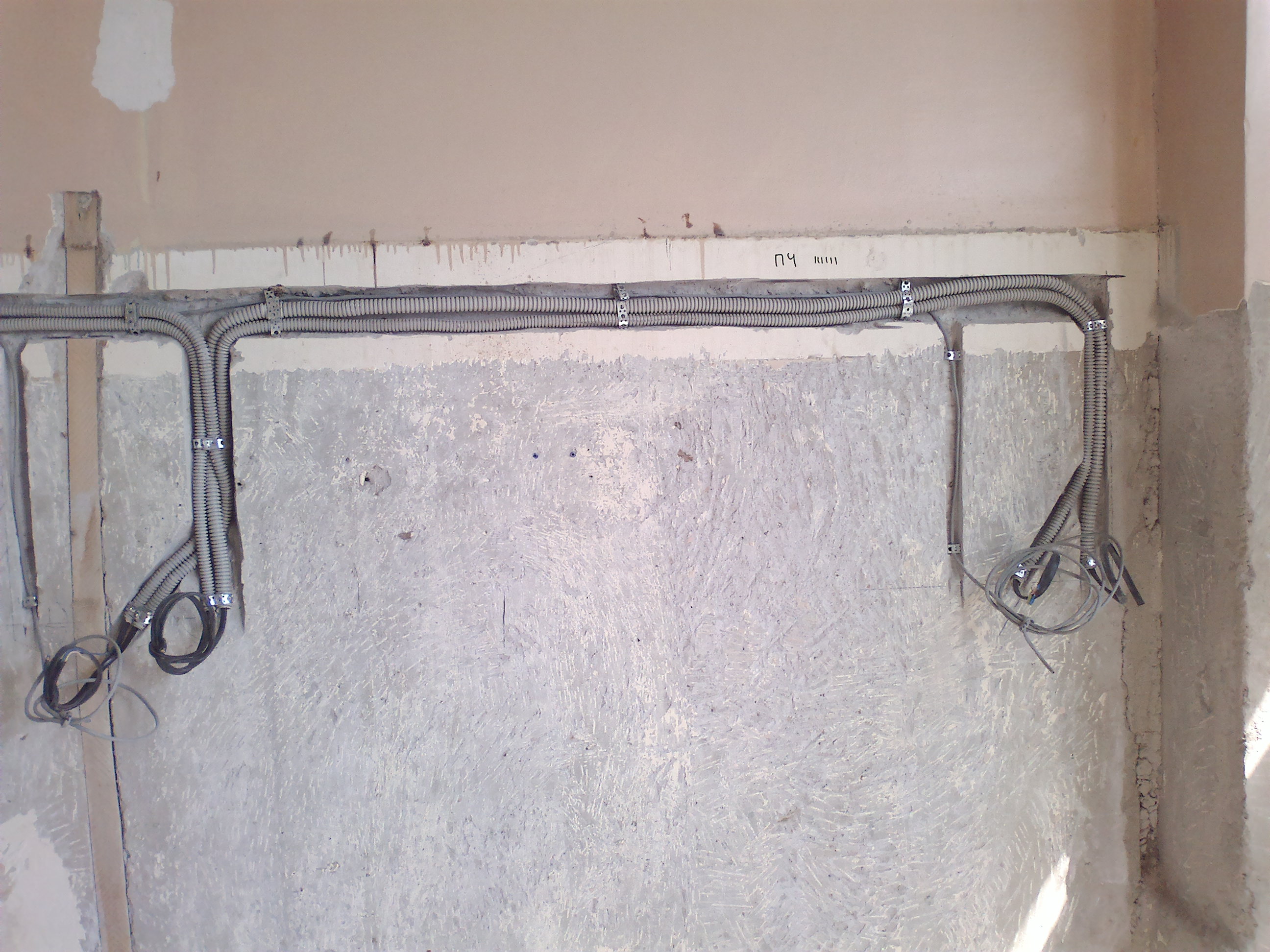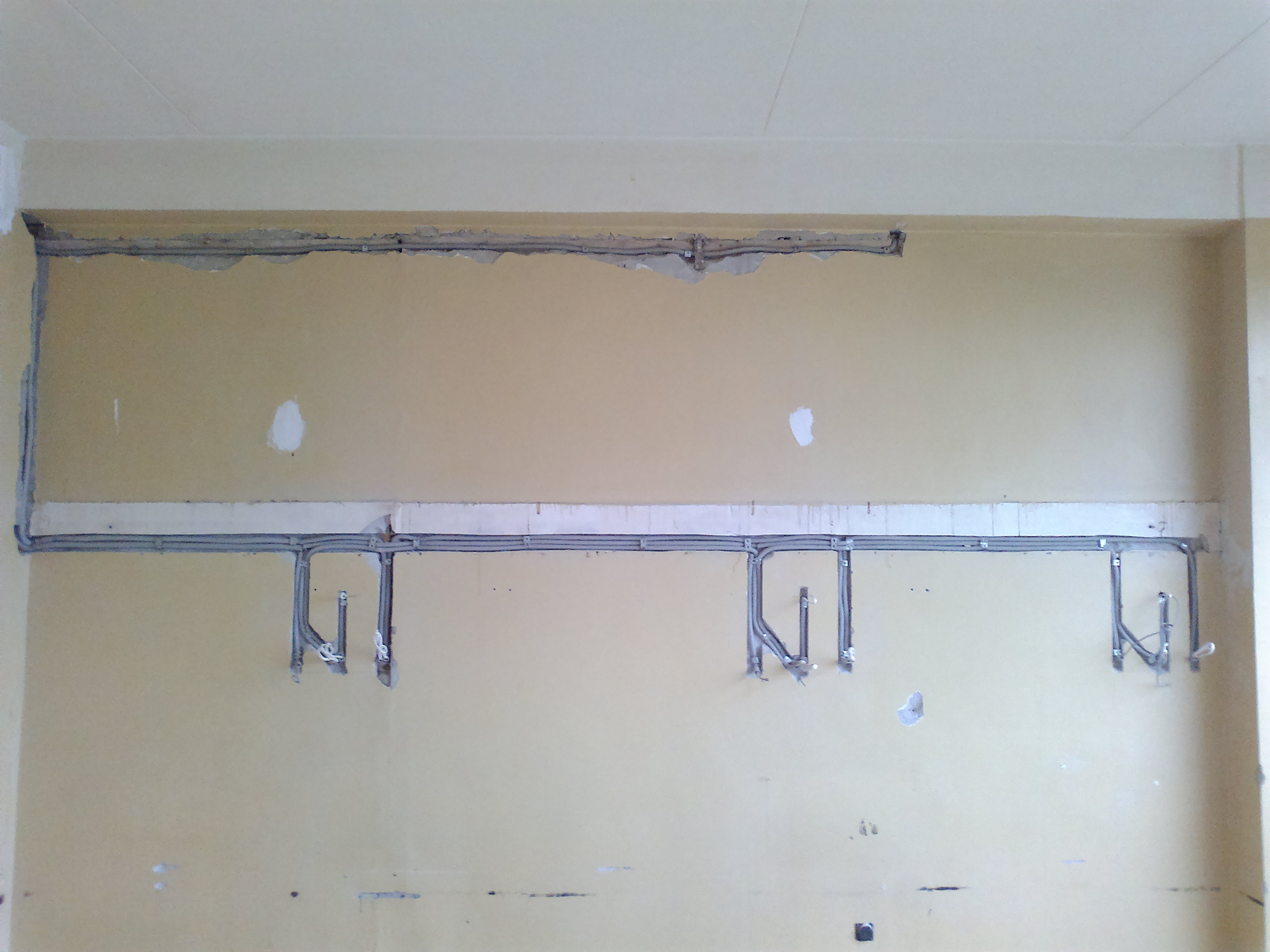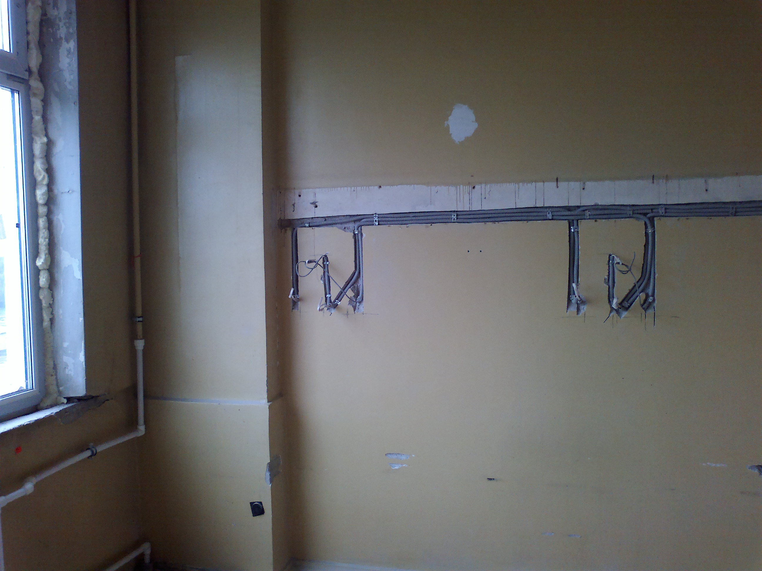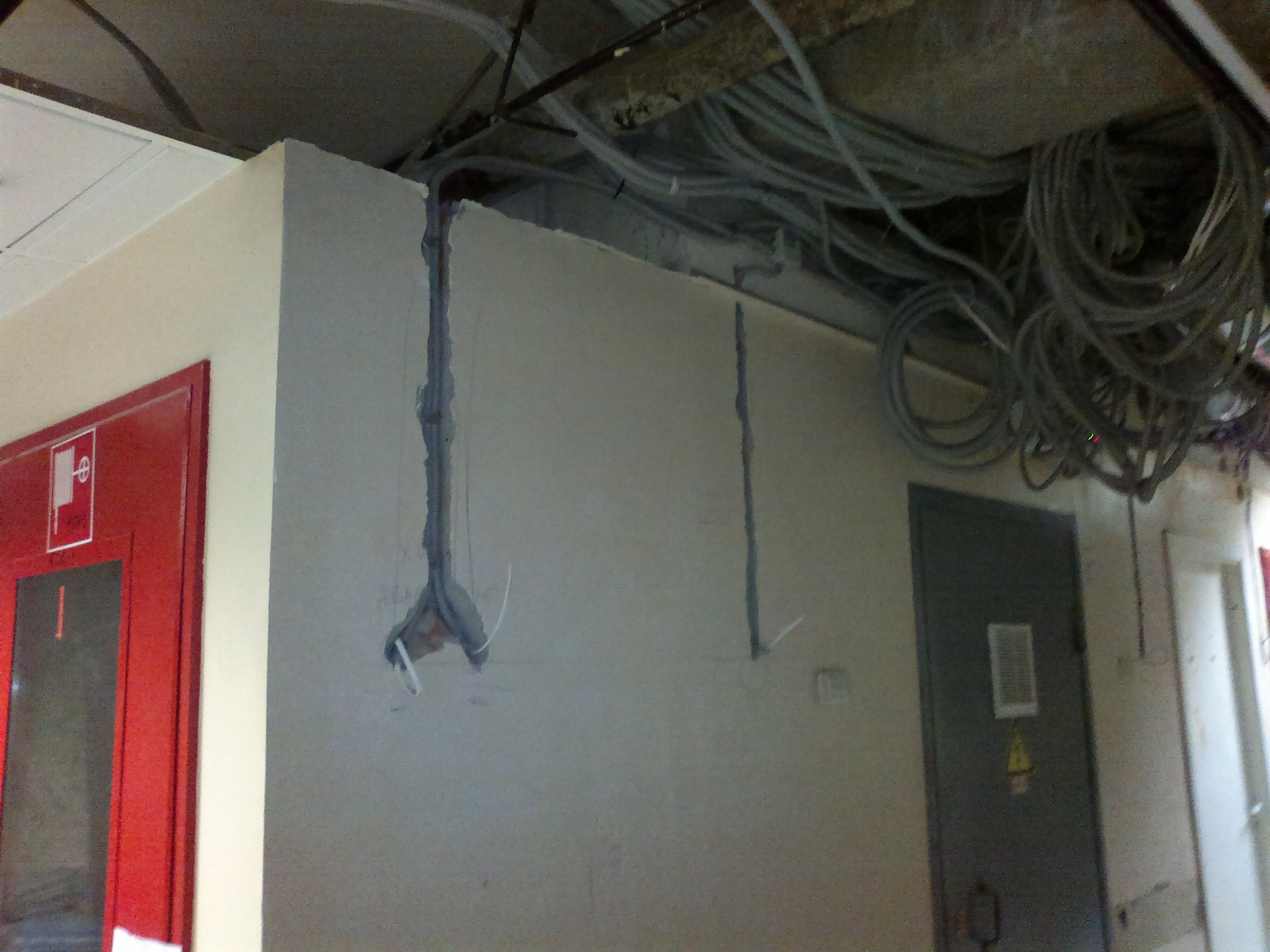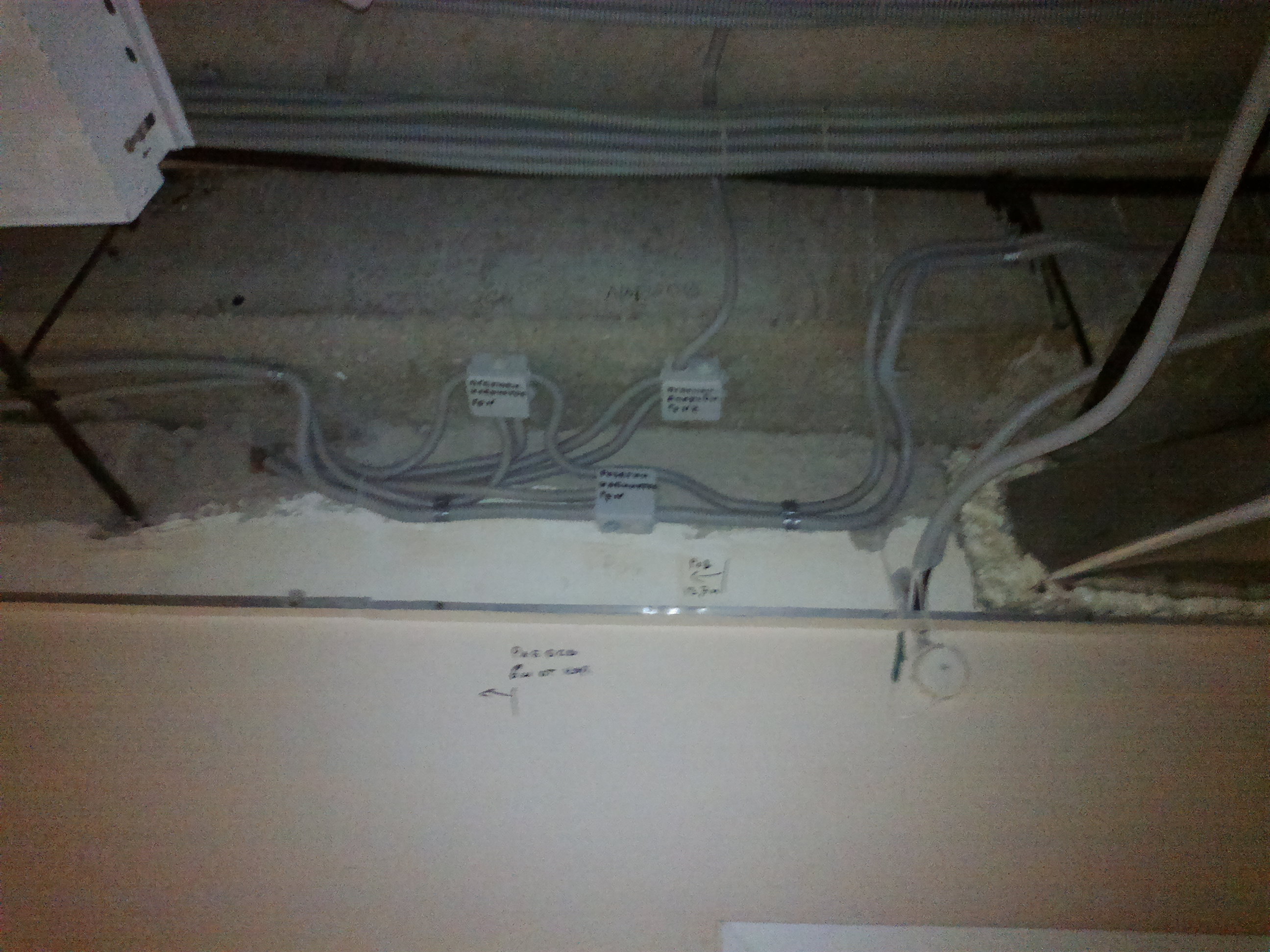 Замена проводки в палатах и кабинетах. Всё дешевое до нельзя, так как объект с аукциона (торги).Работали наездами почти год, так часть и не доделали.Строители попались узбеки- савсэм плохо работал. Много денег ушло на съем жилья и командировочные. Вся проводка за подвесным потолком ВВГнг в гофре. По стенам по настоянию местного энергетика в штробе и в гофре, так как проводка должна быть заменяема. (ВВГнг монолит)!? В работы входила так же телефонная связь(местная и городская), интернет, телевизионные розетки, проводка для часов, палатная сигнализация на контроллерах с общим пультом у дежурной медсестры.Вся слаботочка- UTP и RG-6 в гофре. Розетки и выключатели дешевые с надписью "ШНЕЙДЕР".На других двух этажах заменили местные старые щиты на модульные ЩРН-24 с автоматами АВВ. Всего 36 щитов.