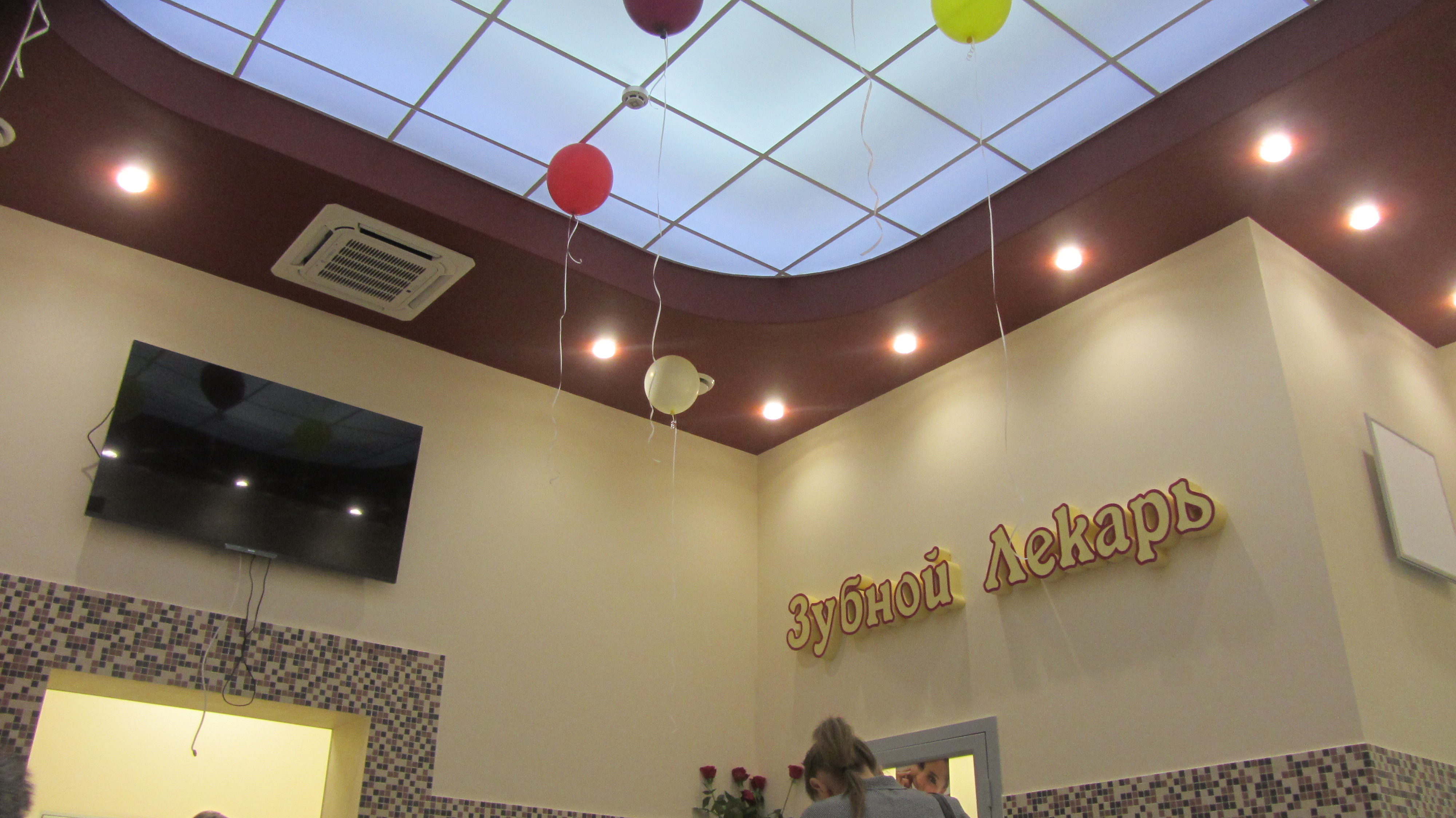 Частная стомотология. В новостройке, высота потолков более 4 метров.Произведён полный монтаж электрооборудования(кроме стоматологических установок, их подключали московские специалисты), ЗКО Shneider Easy 9. По просьбе заказчика на вводе установлены УЗМ -51М,защищая дорогостоящее оборудование от скачков напряжения. В фойе смонтирован световой потолок,в лечебных залах установлены специальные светильники для таких помещений. Наружняя реклама подключена через фотореле.