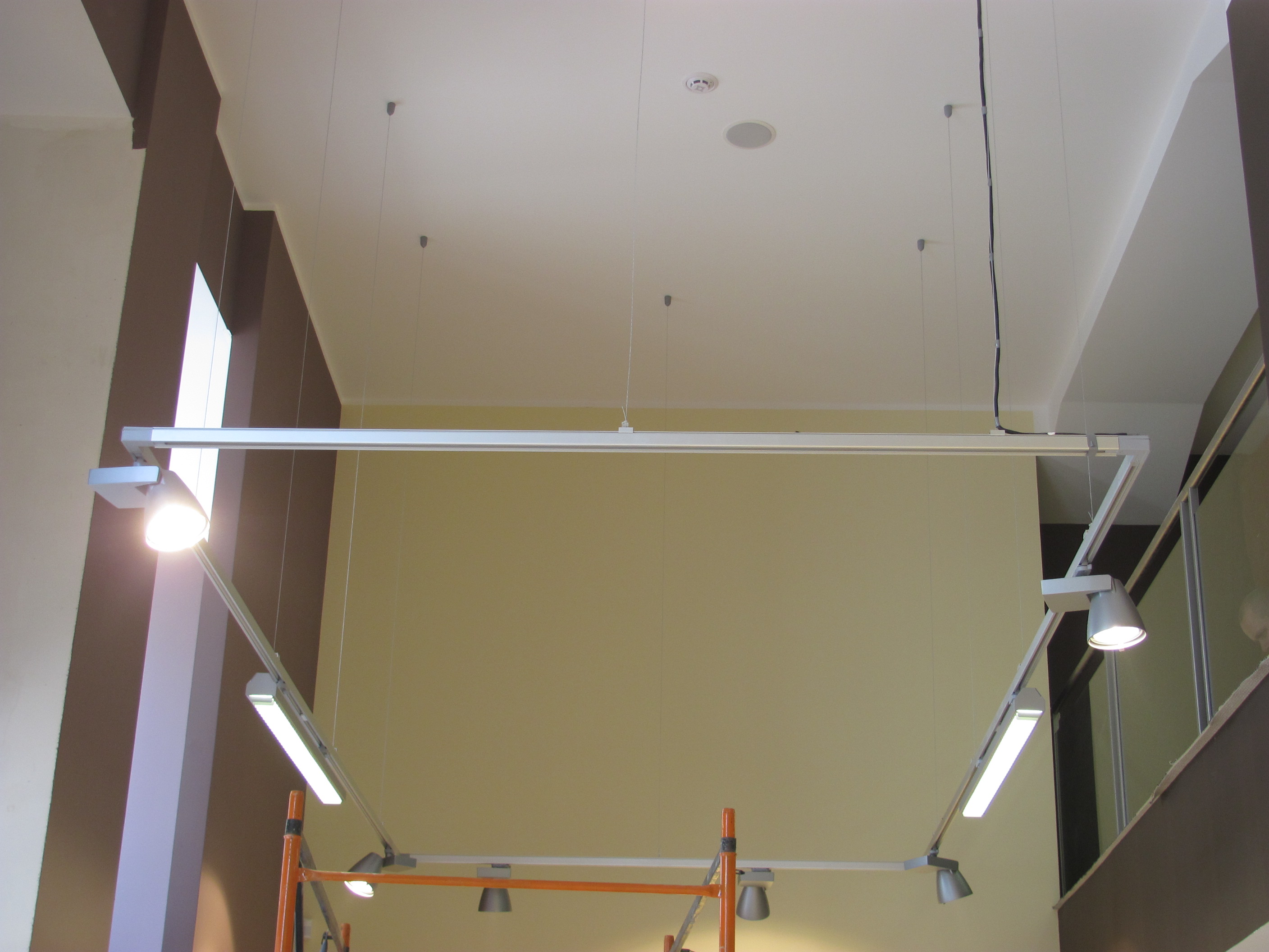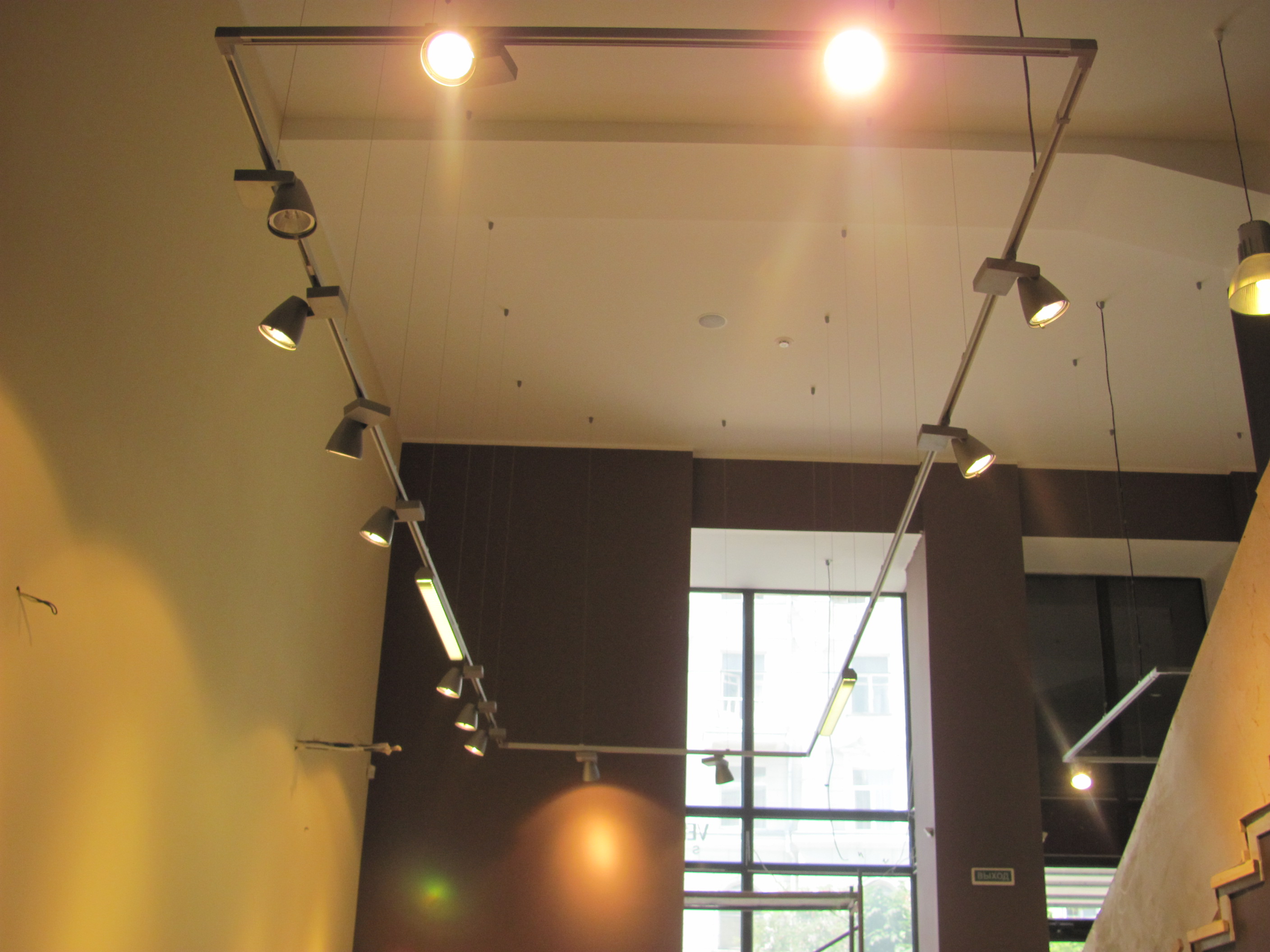 Монтаж кабеля ВВГ Нг под штукатурку и ГКЛ. Монтаж точечных светильников в ГКЛ. Монтаж шинопровода на подвесах и накладным способом. Монтаж трековых светильников.