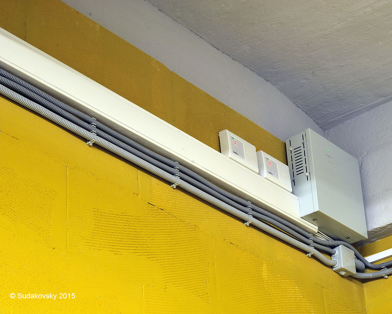 В качестве защитной меры безопасности от поражения электрическим током используется защитный проводник, который подключается в электрощите к шине РЕ. Коммутация цепей в распаянных коробках выполнена с помощью зажимов WAGO.