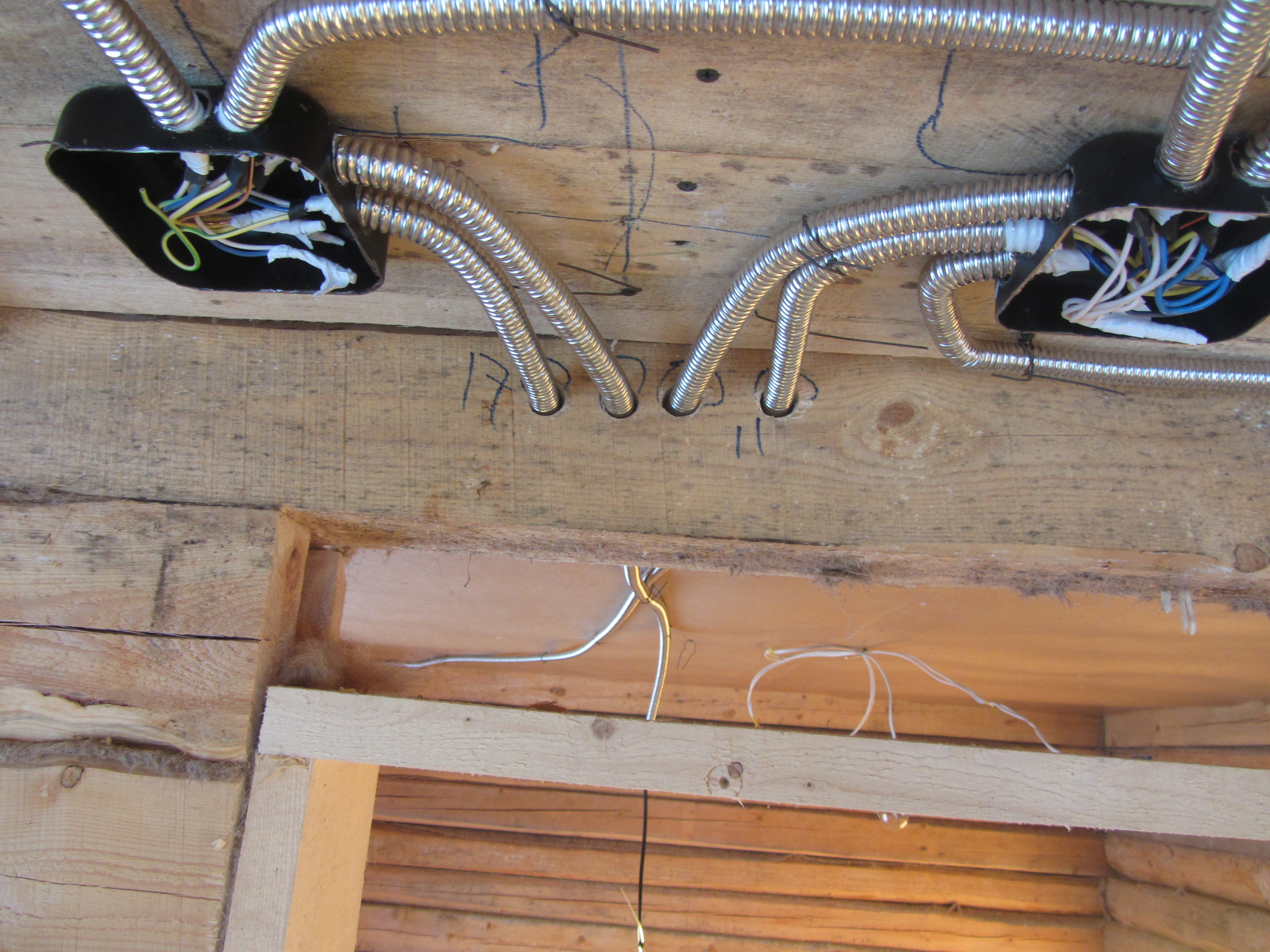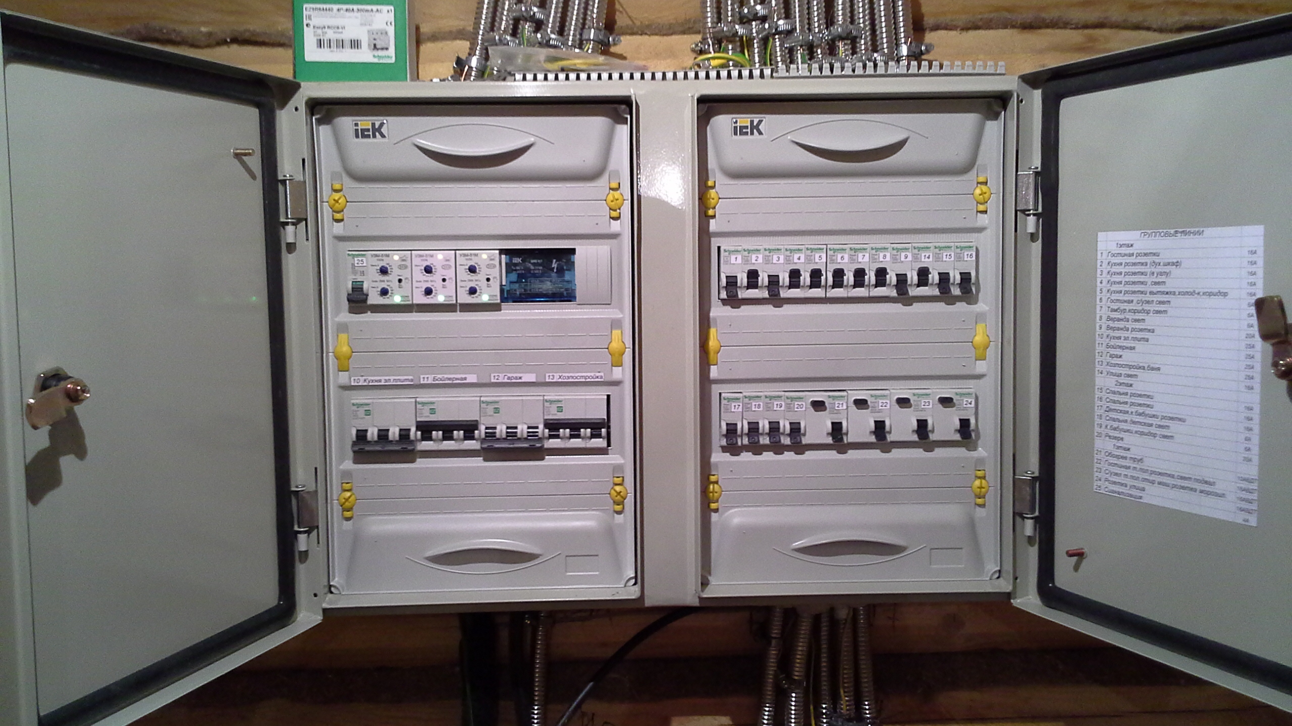 Загородный 2-х этажный дом из брусаТип объекта: Коттедж Площадь: 100-250 м. кв. Тип оборудования: Модульное ЗКО (защитно-коммутационное оборудование), Слаботочные сети (Оборудование безопасности, компьютерные сети ...), Другое оборудование Выполнен первый этап работ.По всему дому выполнена скрытая электропроводка в нержавеющих гофротрубах,распред коробки - металл,соединения пропаяны,все металлические части заземлены. На вводе выполнено повторное заземление,вводной кабель до щита проложен в метал трубе с толщиной стенки 3,5мм.Кабель Нгls ГОСТ. Все линии защищены противопожарным УЗО.