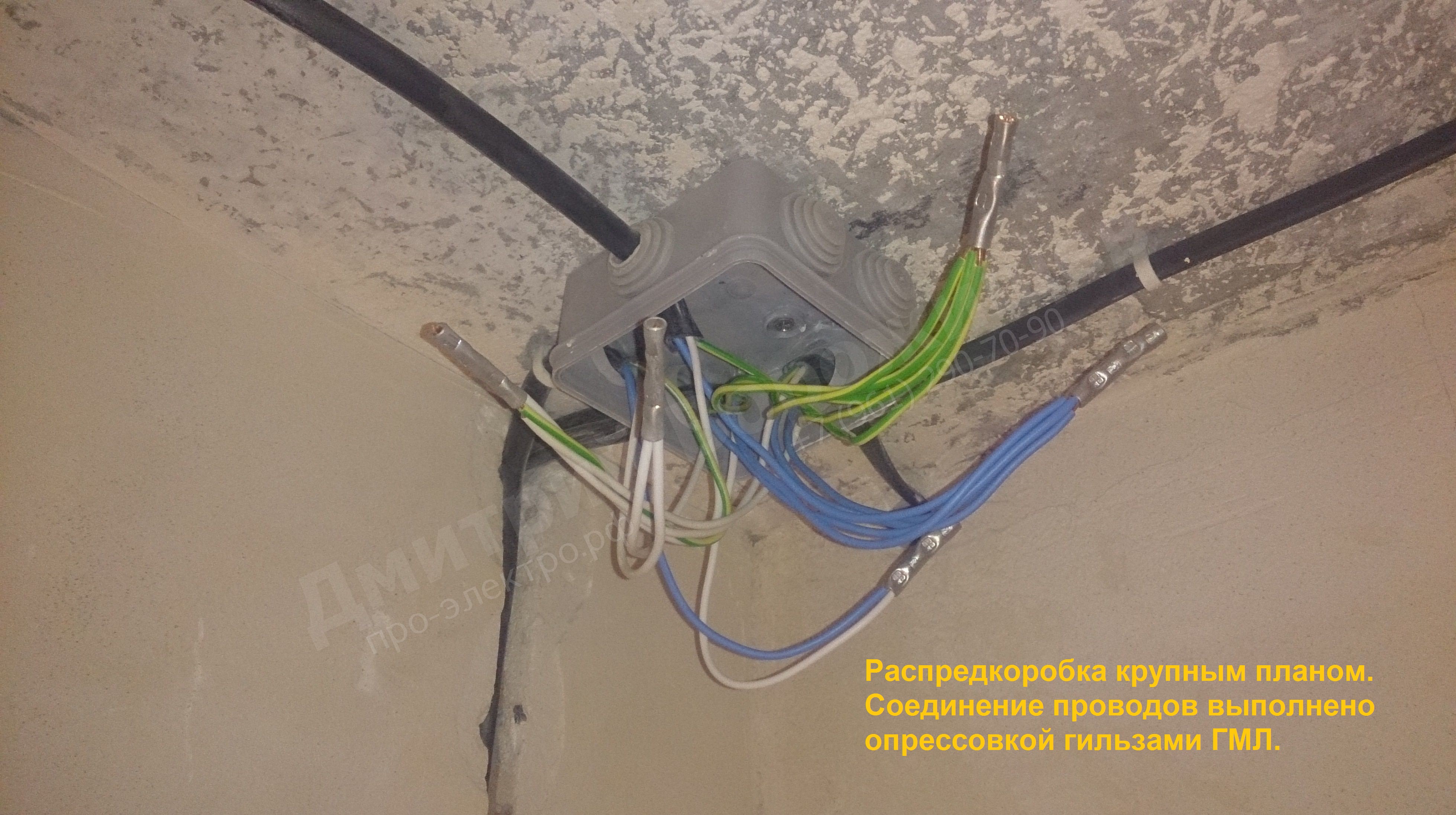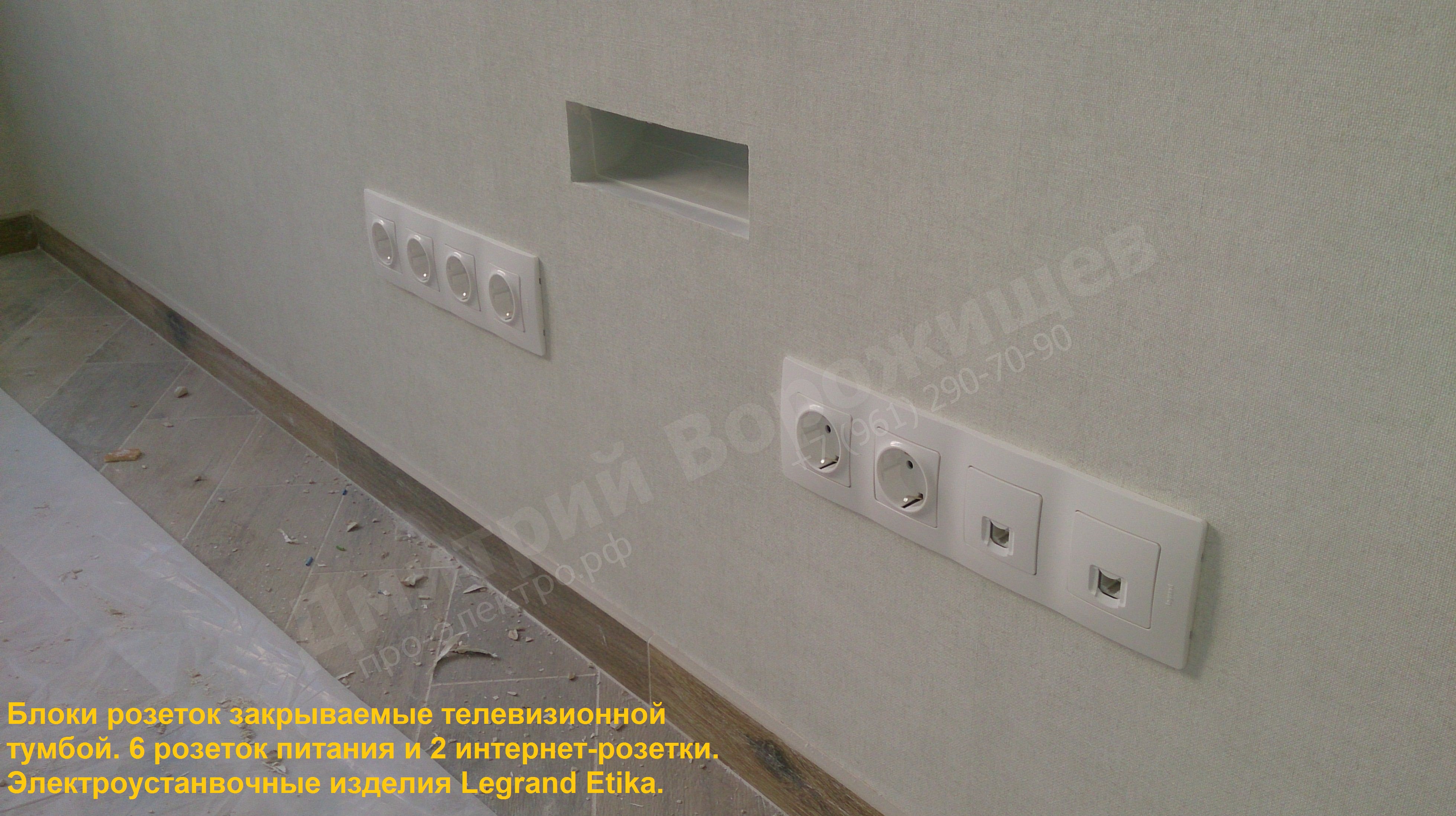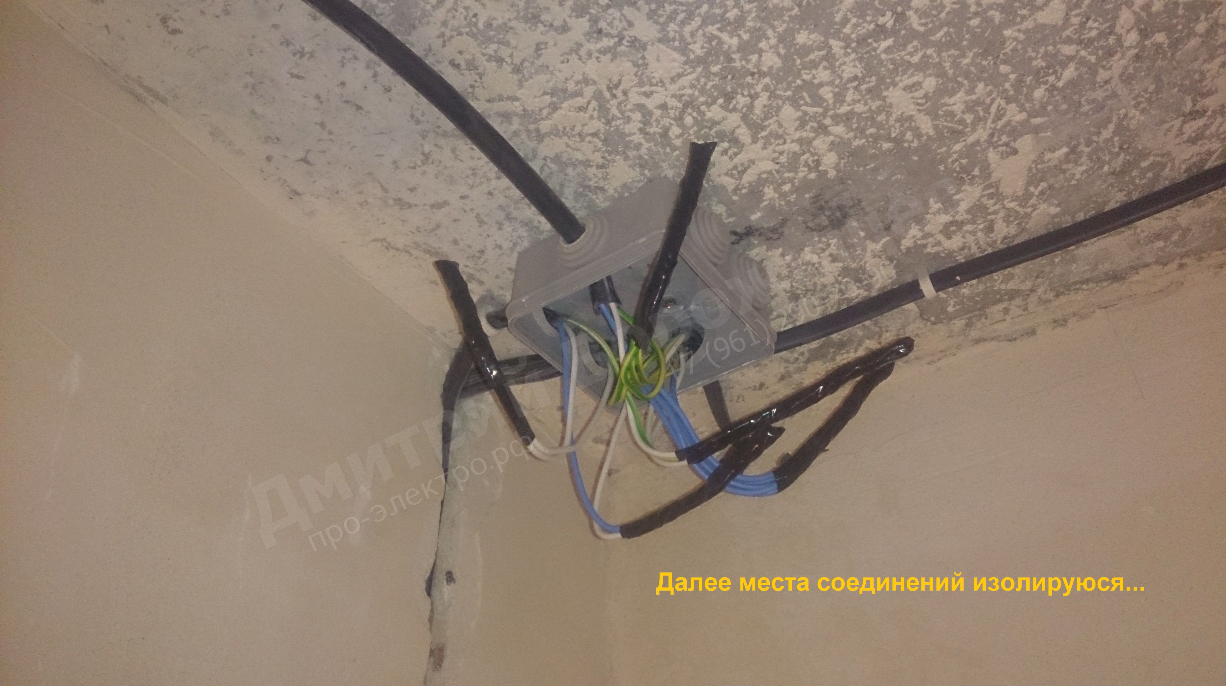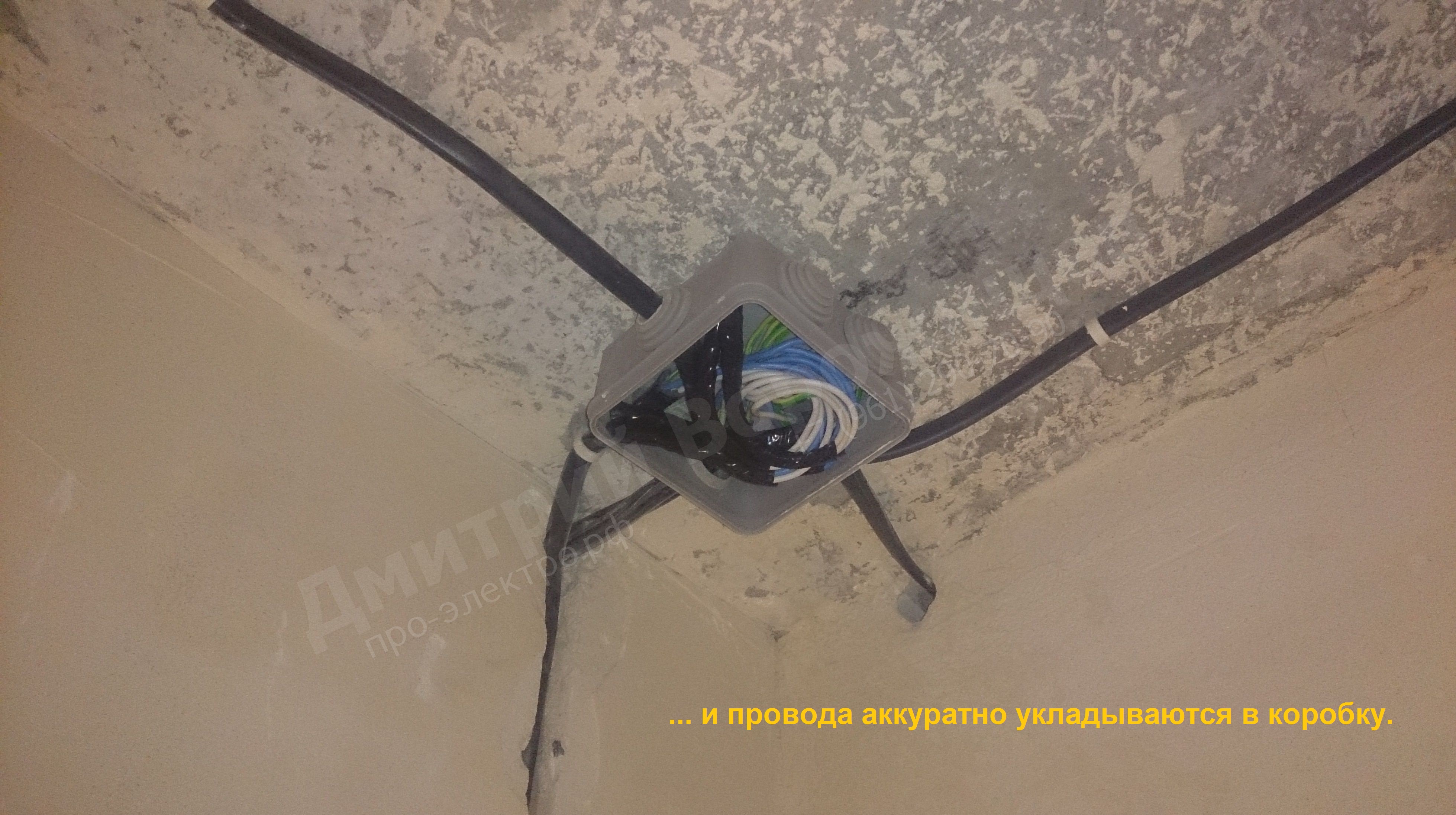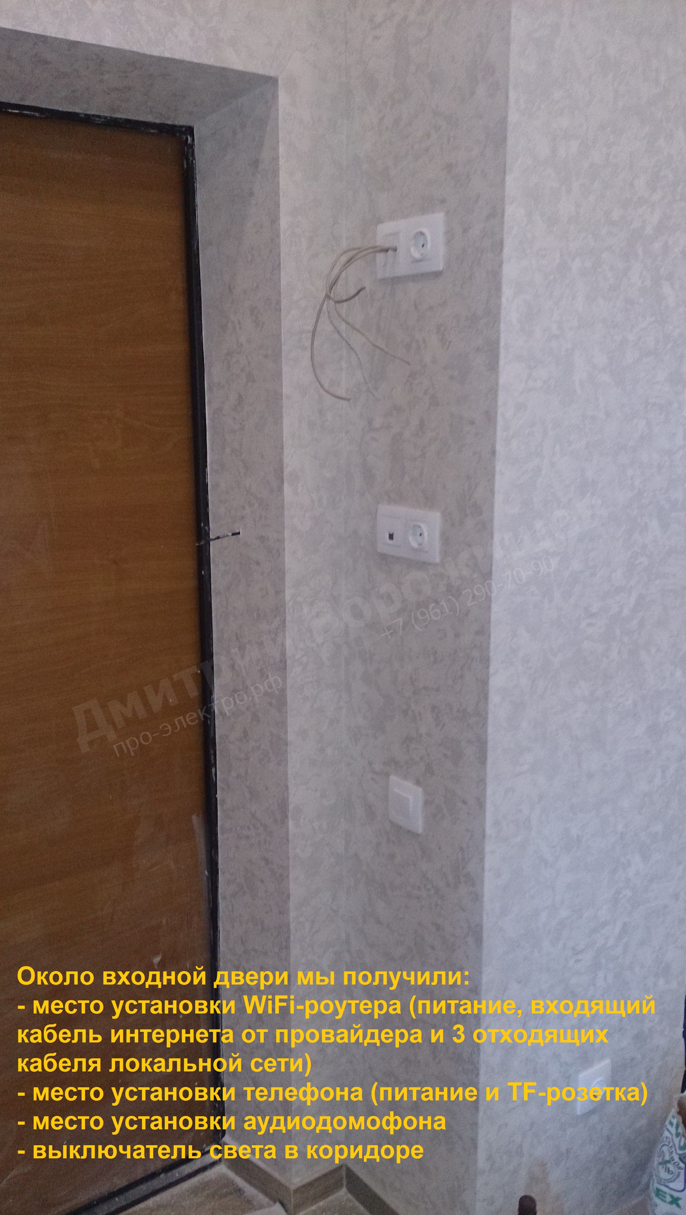 Монтаж электропроводки в 2к квартире ж/к "Чеховский сквер"Тип объекта: Квартира Площадь: 50-100 м. кв. Тип оборудования: Модульное ЗКО (защитно-коммутационное оборудование), ЭУИ (Электроустановочные изделия - розетки, выключатели, переключатели ...) , Слаботочные сети (Оборудование безопасности, компьютерные сети ...) Просторная квартира в элитном жилищном комплексе. Уйма контрастов. Подъезд замощен керамогранитом, но устанвлены плохие китайские автоматы в этажном распределительном электрощите; высокие потолки (3,5 м!), но кривые плохосложенные межкомнатные перегородки. Электромонтаж на объекте стандартный - прокладка кабеля ВВГнг-LS по потолку.