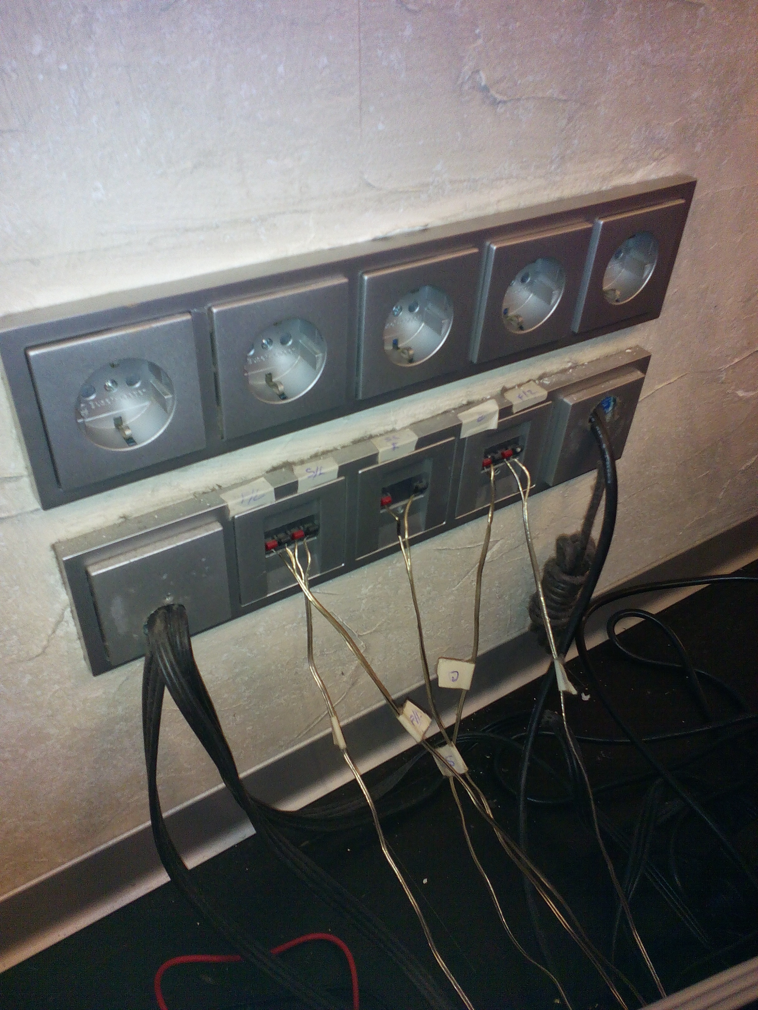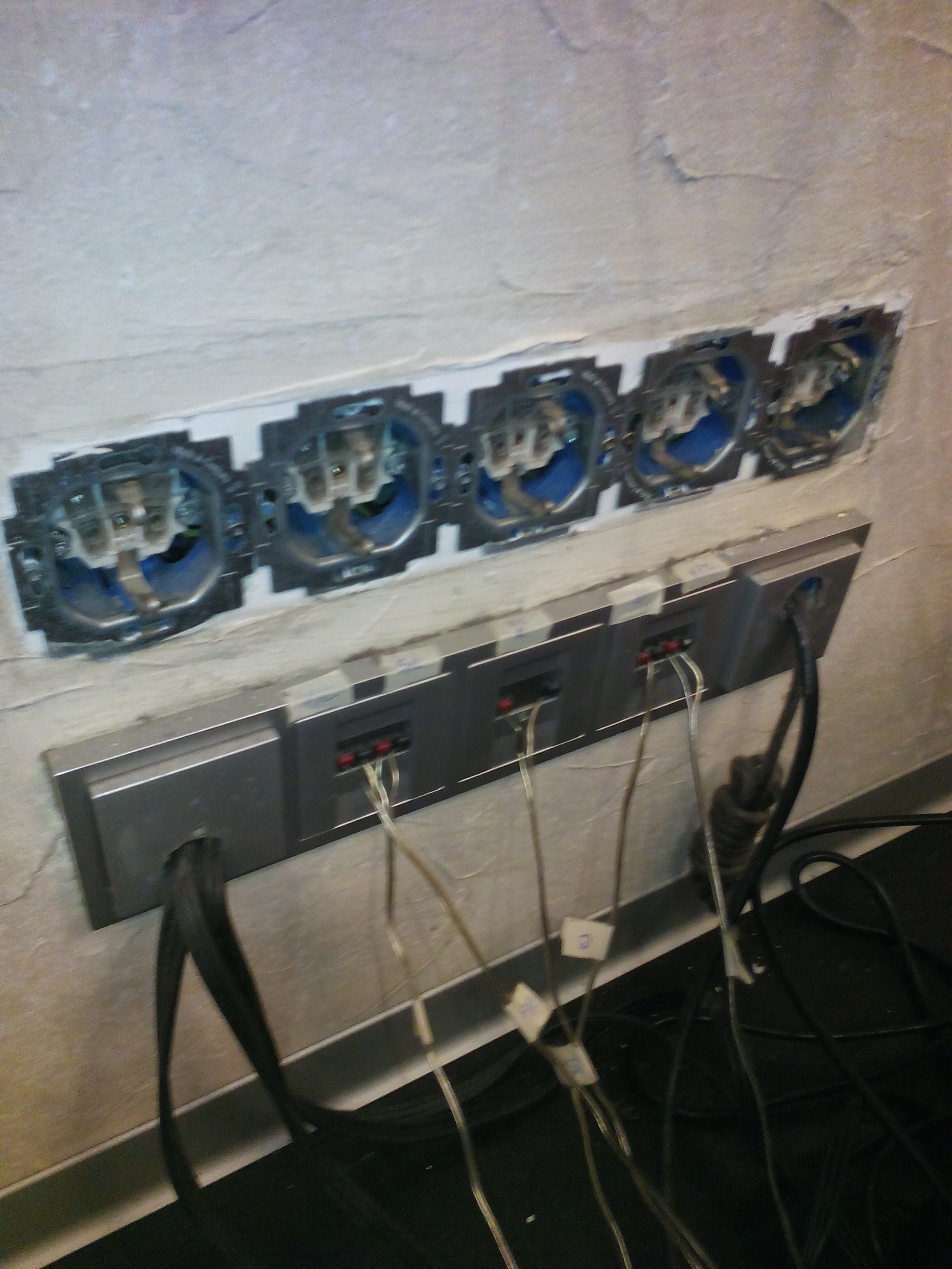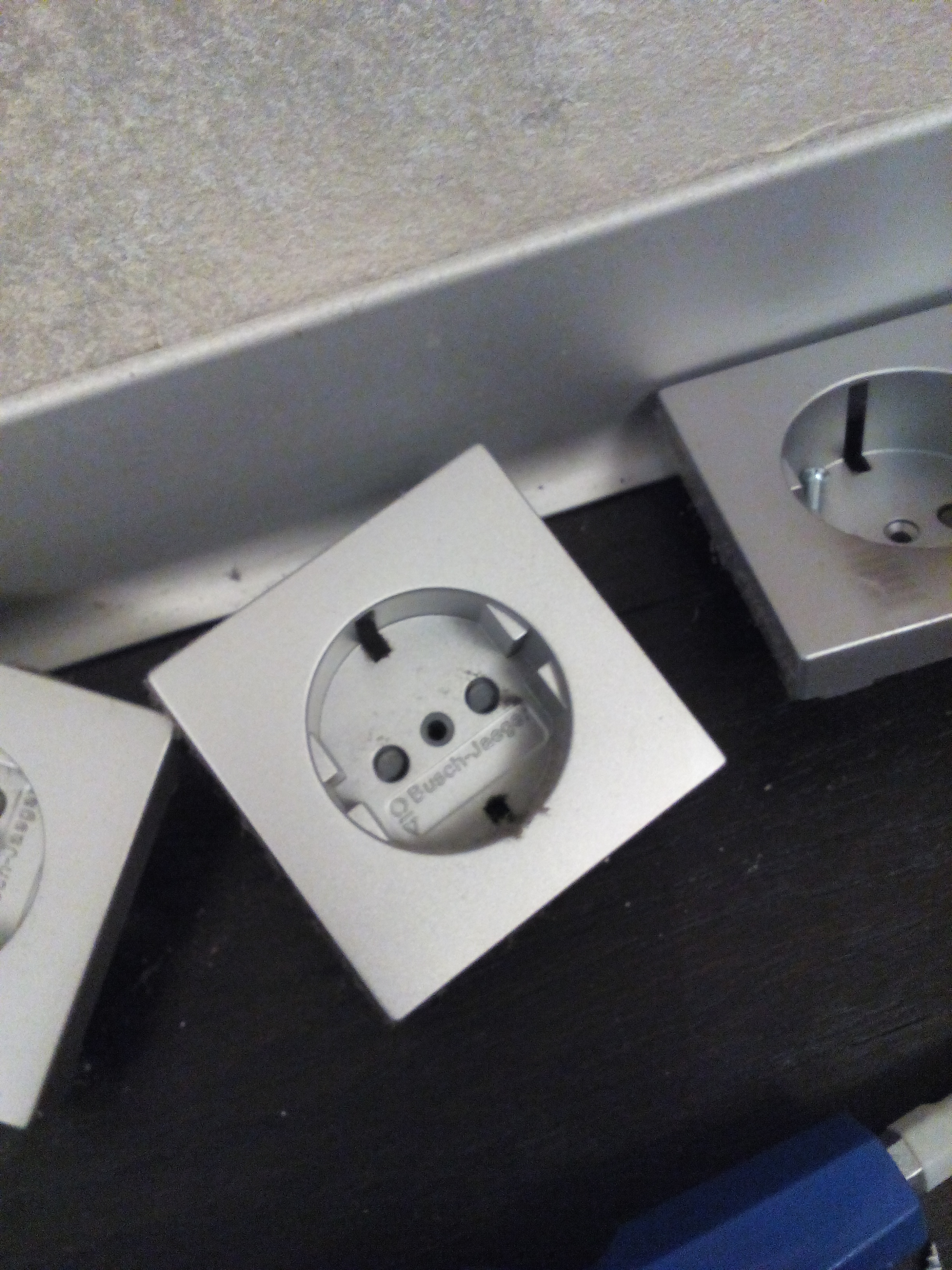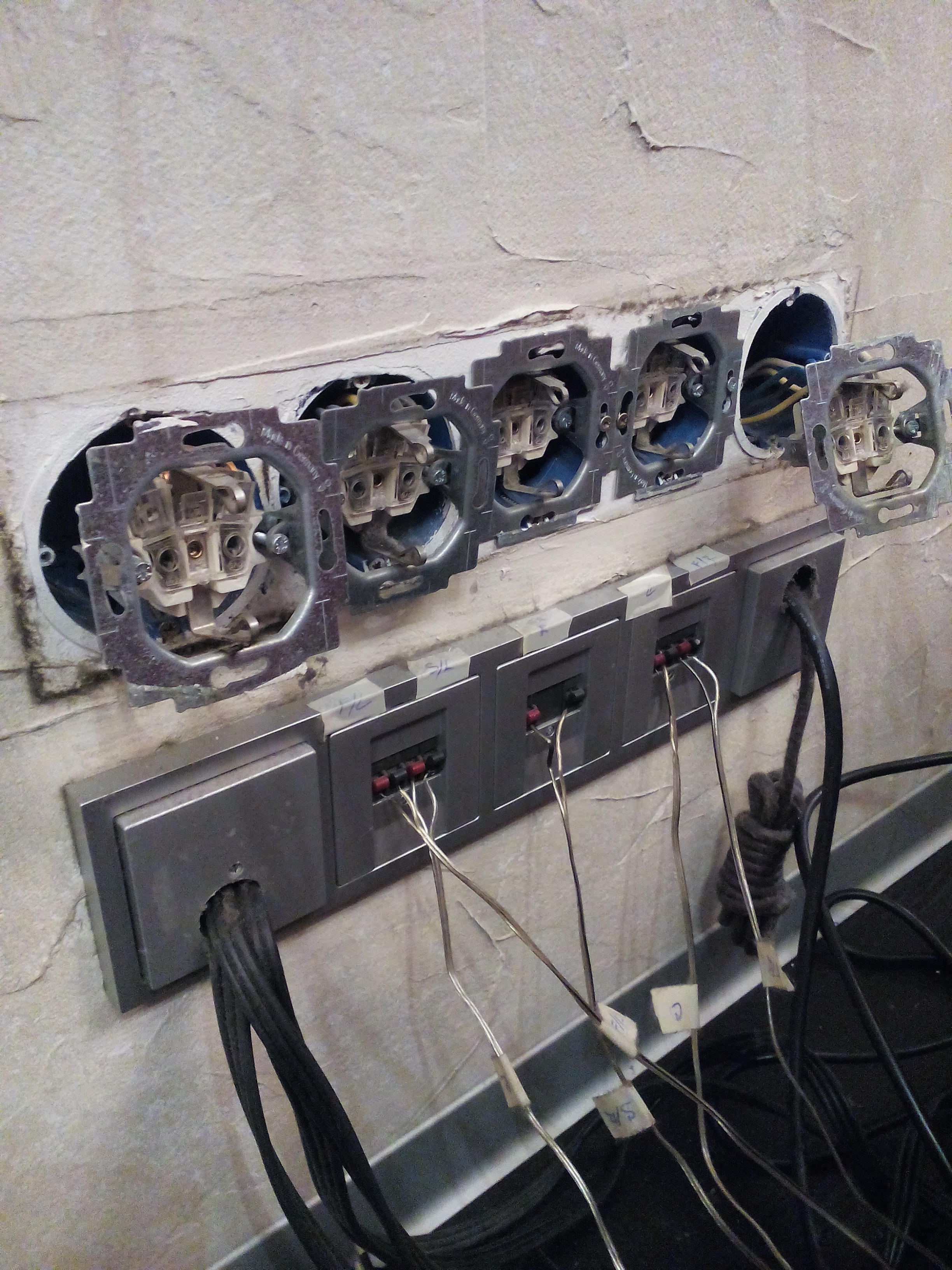 Искрение в блоке розеток от фирмы Busch-Jaeger при включении любой нагрузки, в итоге выбил автомат. При осмотре обнаружил пробой проводки между фазой и РЕ. После изолирования и сборки, розетки снова заработали.
