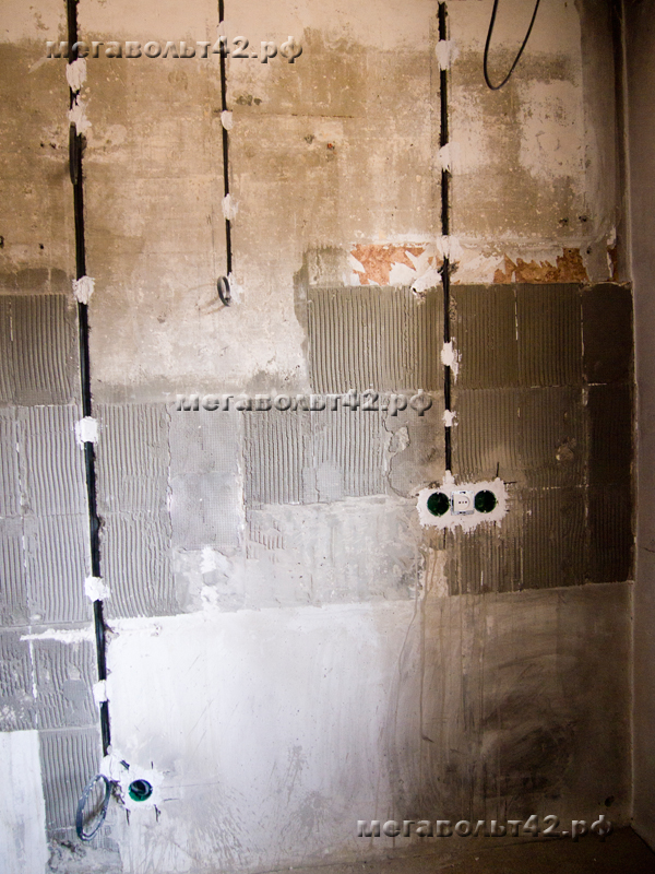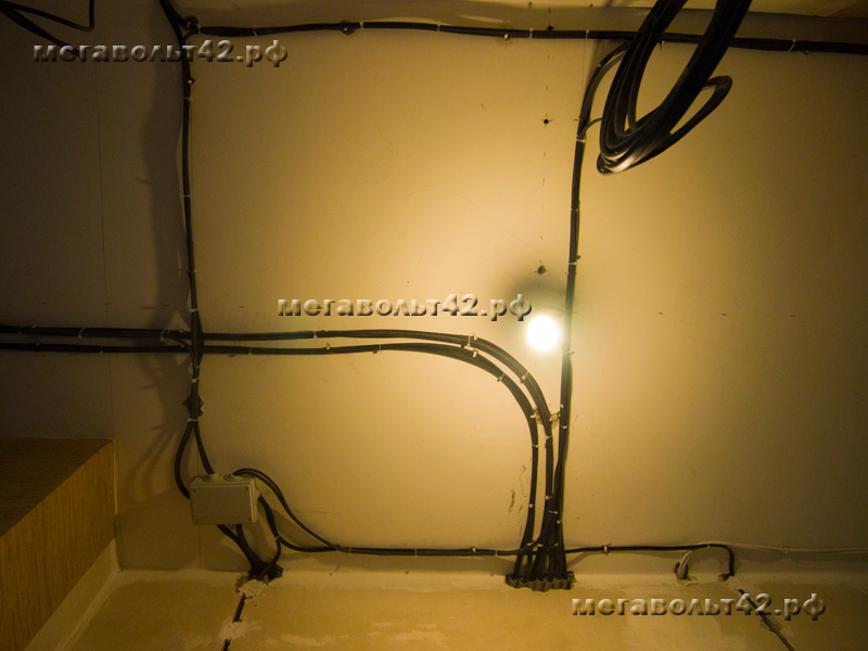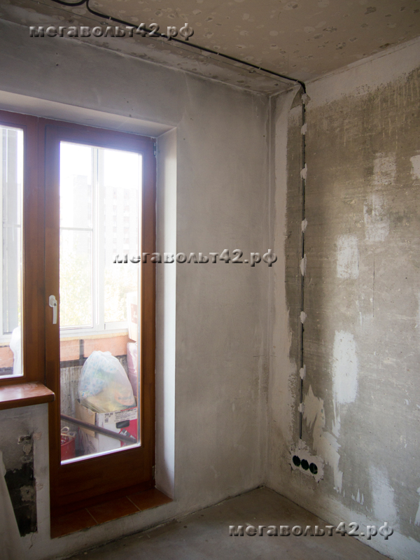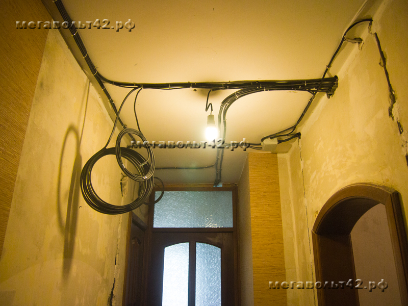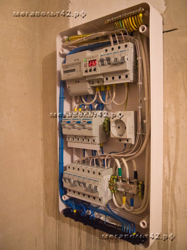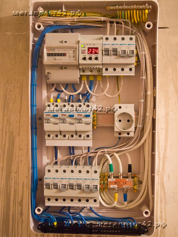 Квартира в доме по адресу пр. Кузнецкстроевский 23. Монтаж по потолку кабелем марки ВВННГ-LS. Автоматические выключатели HAGER. Щит накладной Tekfor на 36 модулей.
