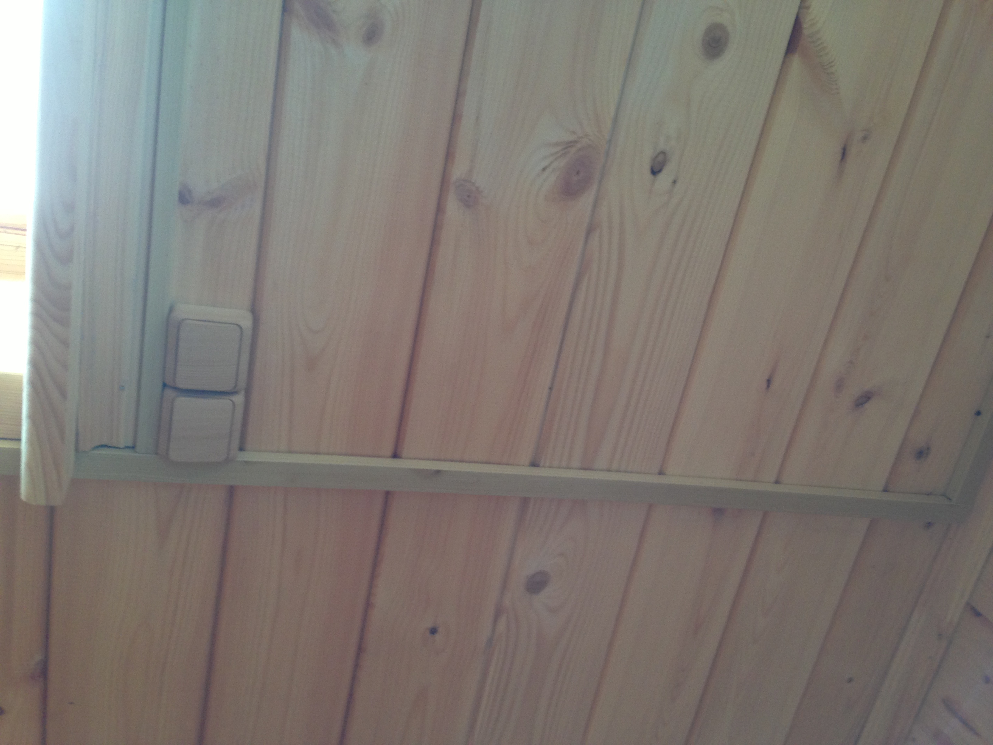 На 2 этаже электропроводка спрятана в кабель-каналы под цвет вагонки. На данном объекте использовались розетки и выключатели марки Schneider Electrik серии Этюд сосна. Автоматика ИЭК. Кабель-каналы TDM.