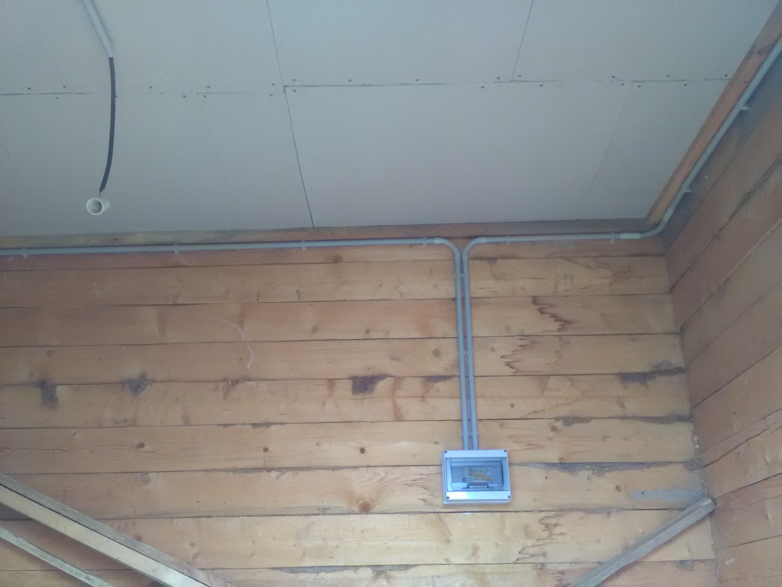 Хоз. пристройкаТип объекта: Другое Площадь: До 50 м. кв. Тип оборудования: Другое оборудование Маленькая пристройка. Установлен электрощит IP 54 марки TDM Elecrtric. Автоматика марки ИЭК (УЗО, автомат на розетку, автомат на освещение и резерв) . Совмещённые розетка и выключатель IP 54 марки TDM Electric. Электропроводка выполнена в гладких ПВХ трубах марки ДКС