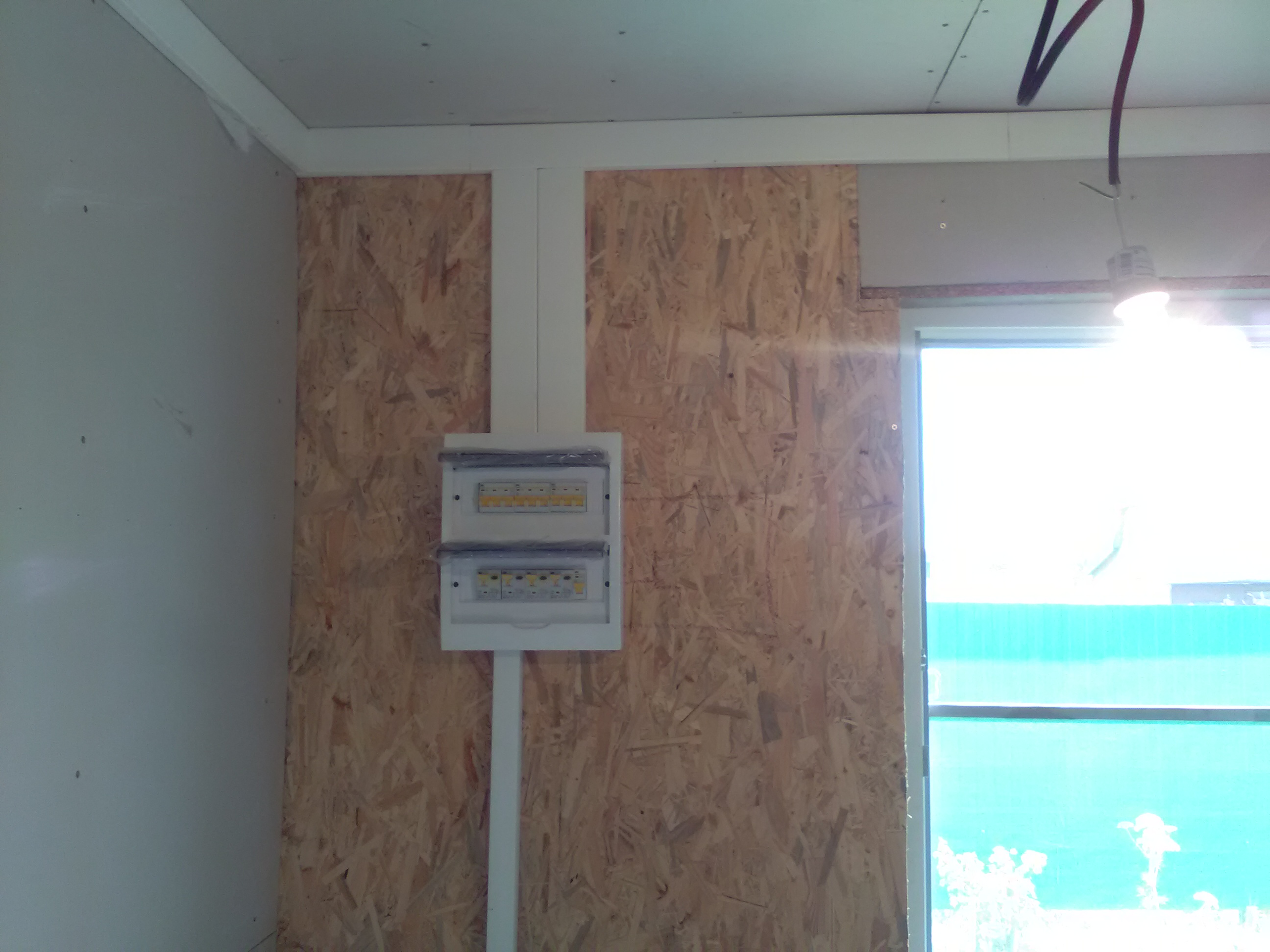Постройка. Монтаж выполнен в кабель-каналах TDM Electric. Розетки и выключатели Schneider Electric серии Этюд. Автоматика ИЭК.
