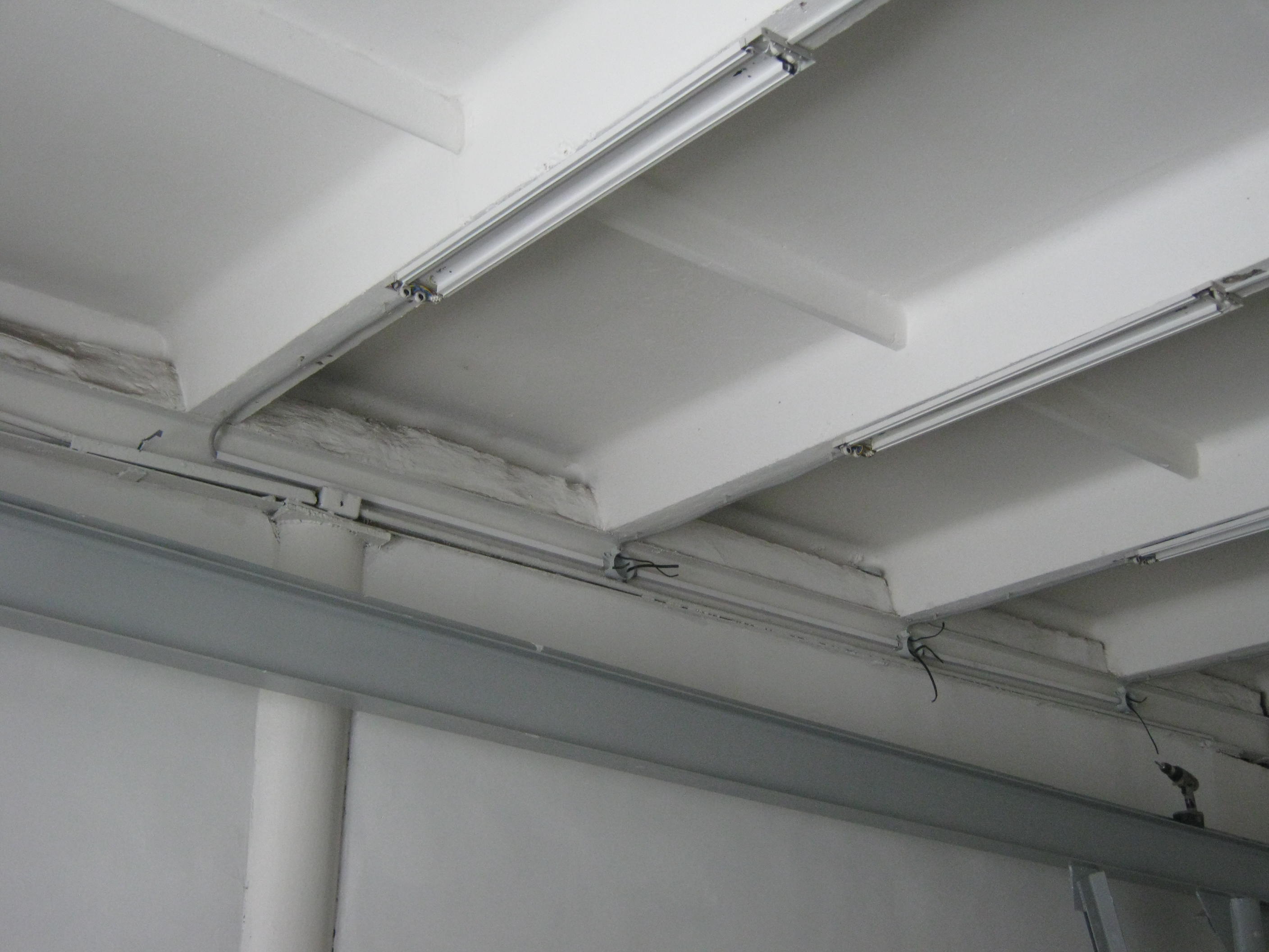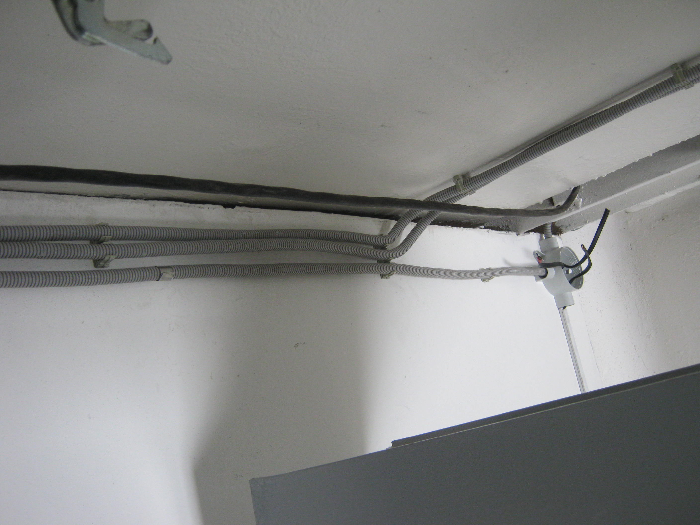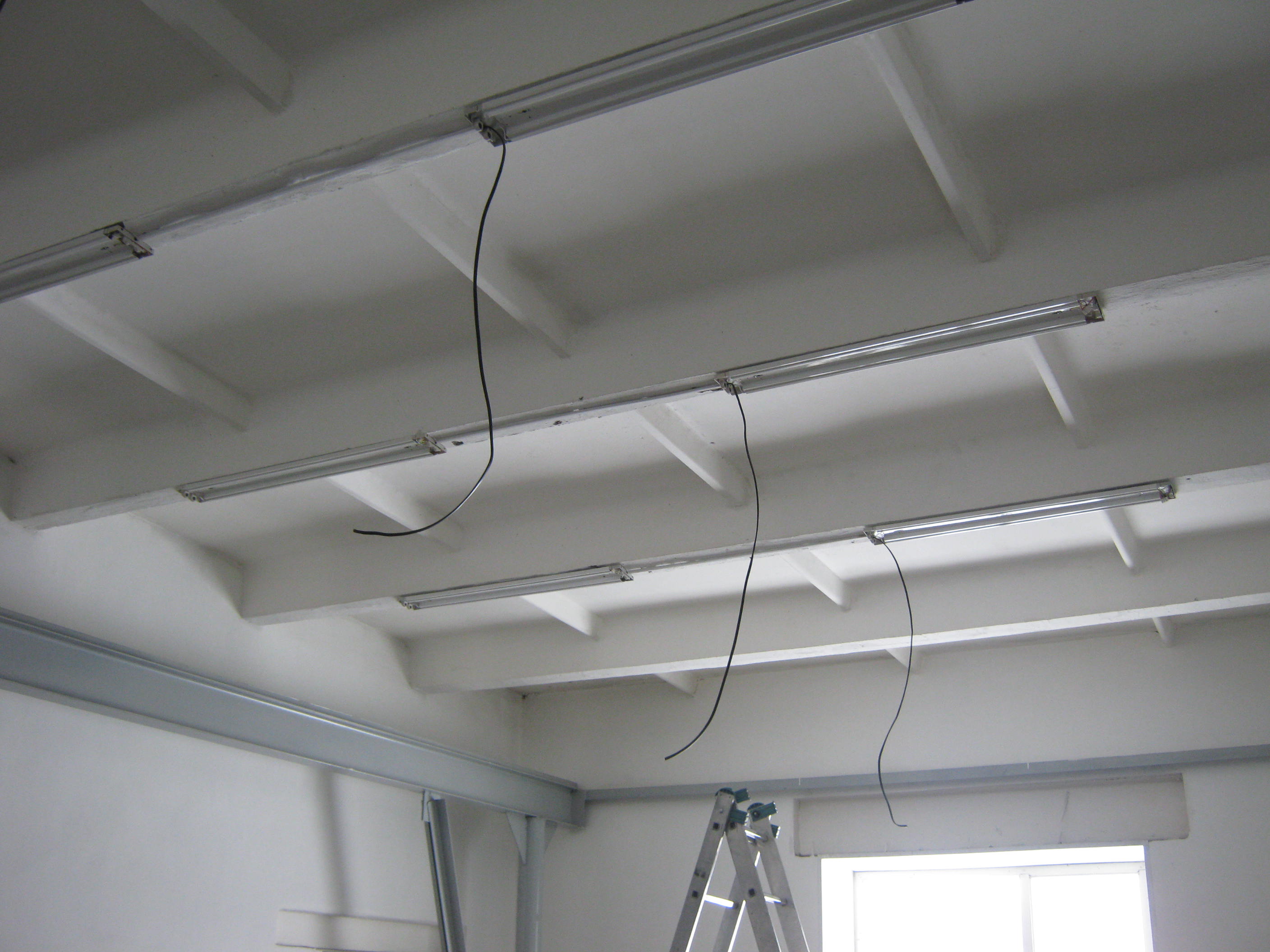 В производственном помещении (высота потолков 4 м) где еще будет устанавливаться кран-балка, нужно повесить светильники ЛБ 2*36 -8шт, + установка ЩР... Приходит 380В ВВГ 5*10, разводка стандартно розетки ВВГ 3*2,5 Свет 3*1,5 все в гофре... У заказчика не оказалось клипсов пришлось мучатся на ленту лоскутова....))