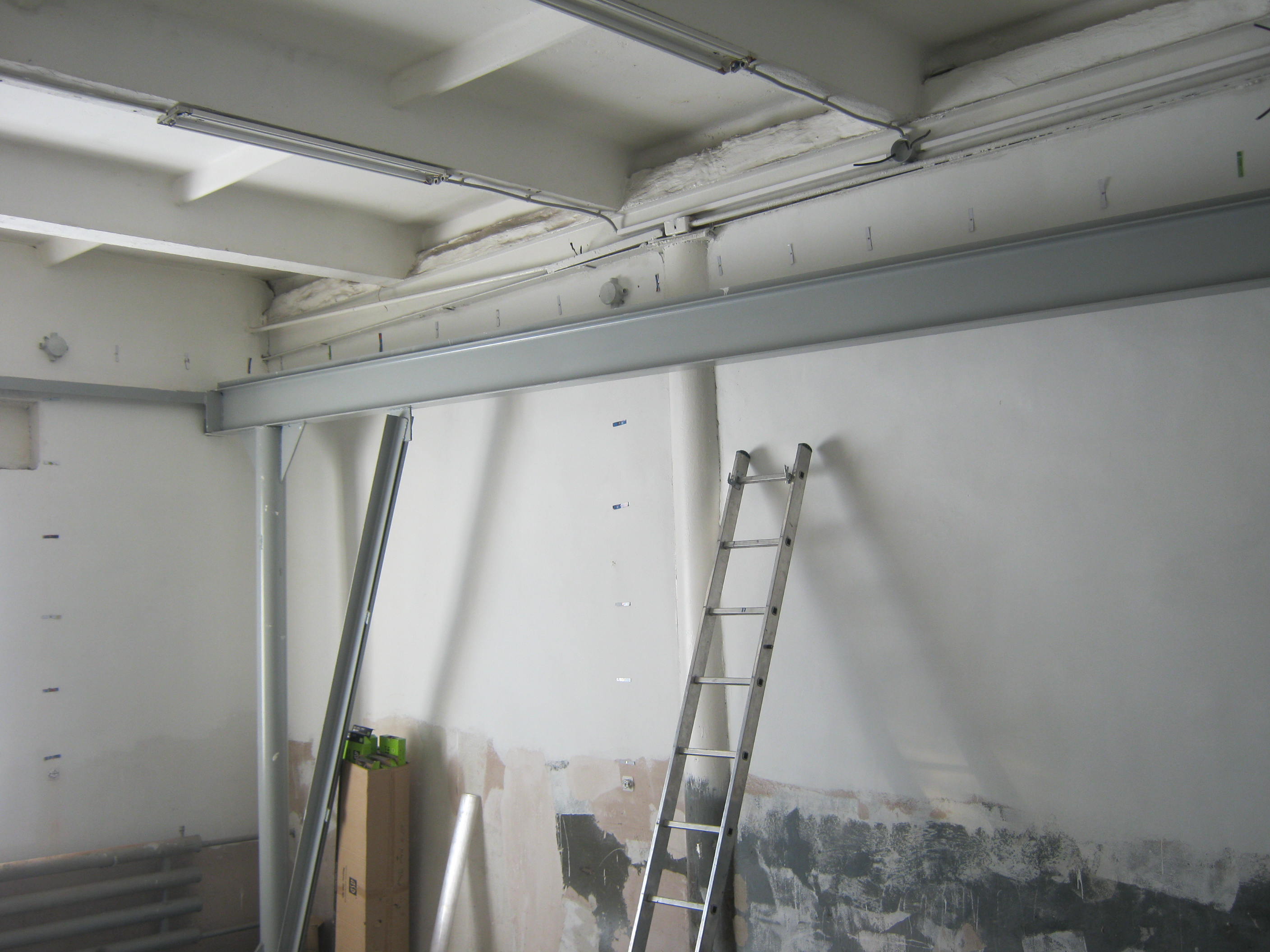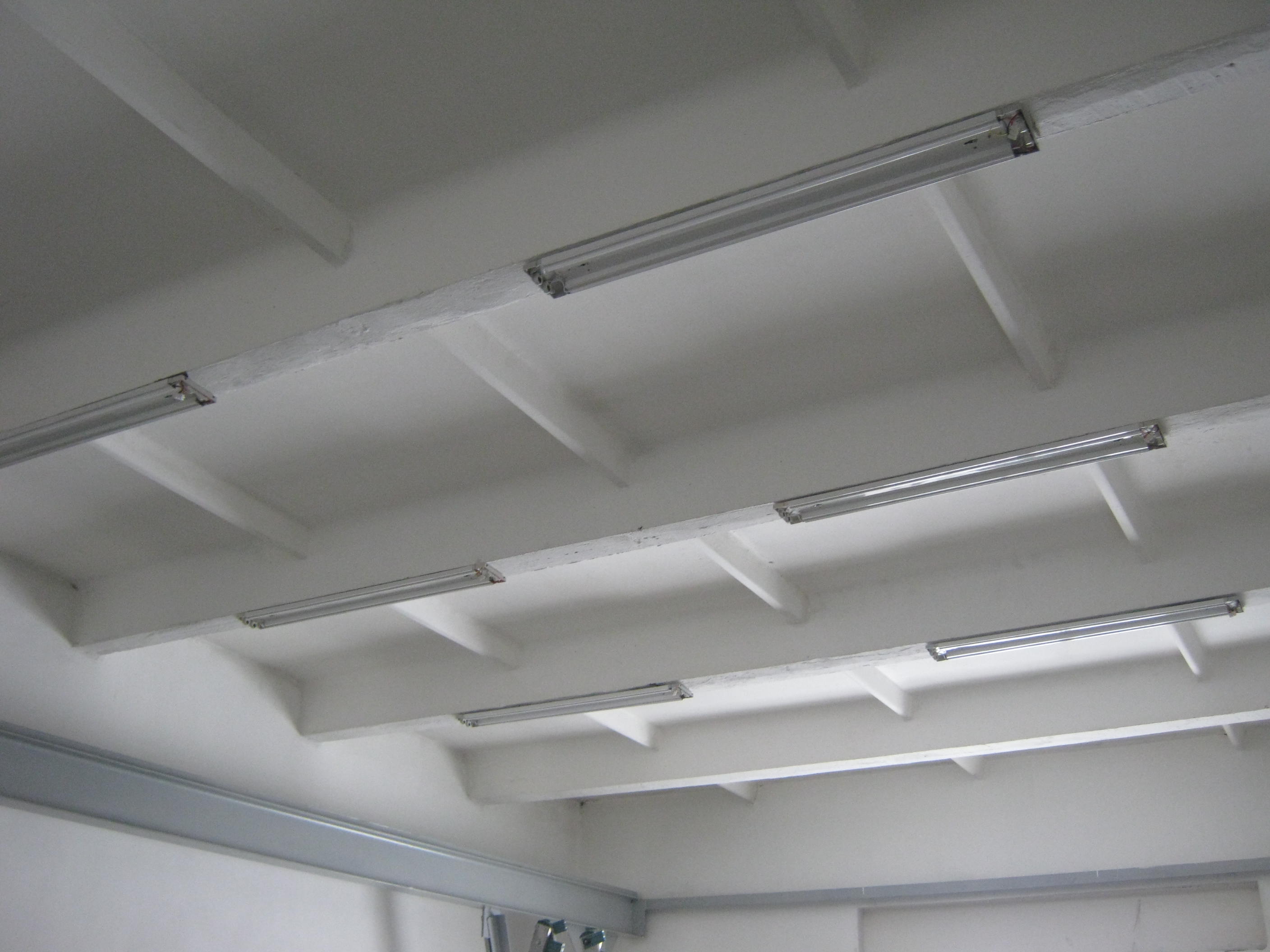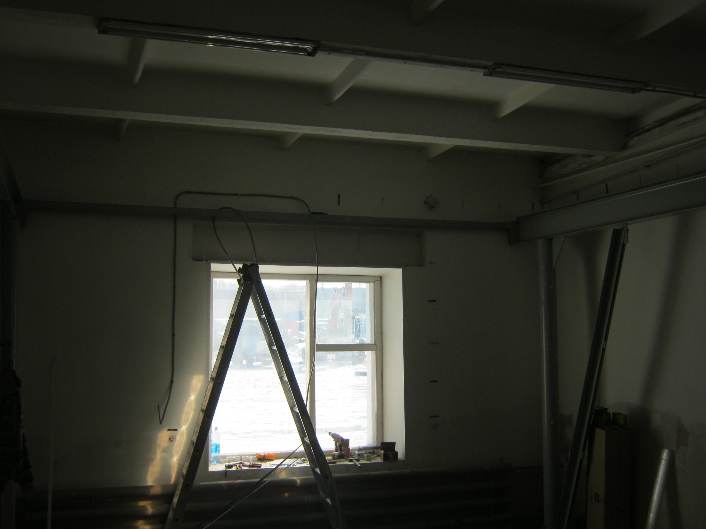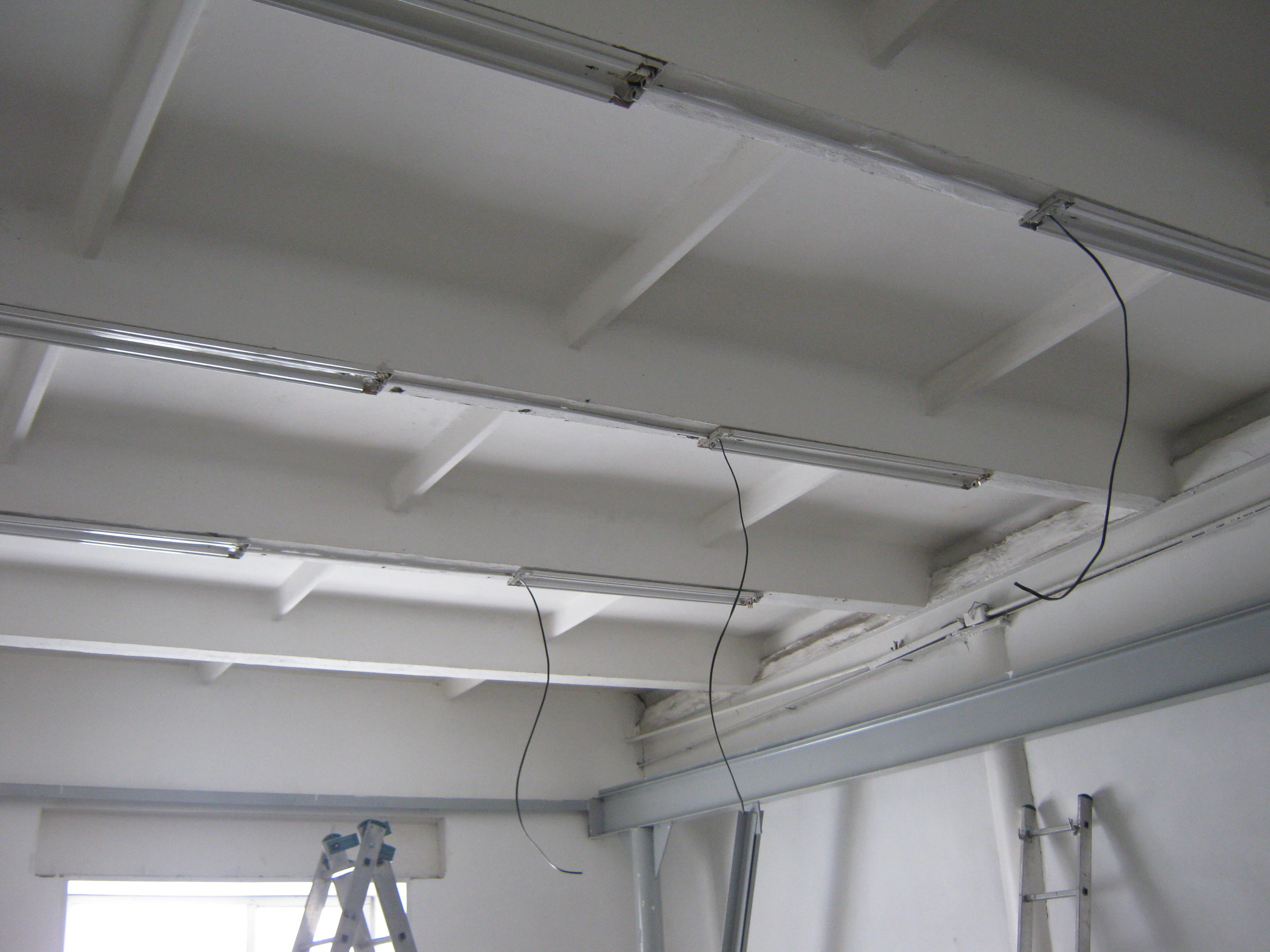 В производственном помещении (высота потолков 4 м) где еще будет устанавливаться кран-балка, нужно повесить светильники ЛБ 2*36 -8шт, + установка ЩР... Приходит 380В ВВГ 5*10, разводка стандартно розетки ВВГ 3*2,5 Свет 3*1,5 все в гофре... У заказчика не оказалось клипсов пришлось мучатся на ленту лоскутова....))
